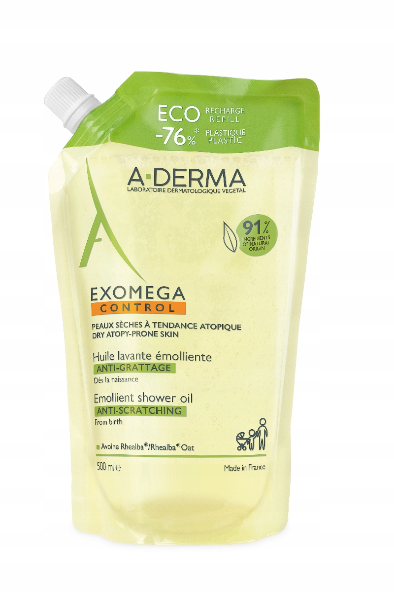 Дбайливо очищає суху та схильну до атопії шкіру немовлят, дітей та дорослих. Заспокоює відчуття свербіння сухої шкіри, схильної до атопічної екземи. Захищає ніжну шкіру. Не містить мила. Він біологічно розкладається. На 91% складається з натуральних інгредієнтів. Очищаюча олійка для душу Exomega Control захищає шкіру від стягнутості та сухості. Очищаюча олія не щипає очі, тому ідеально підходить для всієї родини. Він упакований в еко-заправку, яка на 100% підлягає вторинній переробці, у якій використовується на 76% менше пластику, ніж пляшка об’ємом 500 мл.