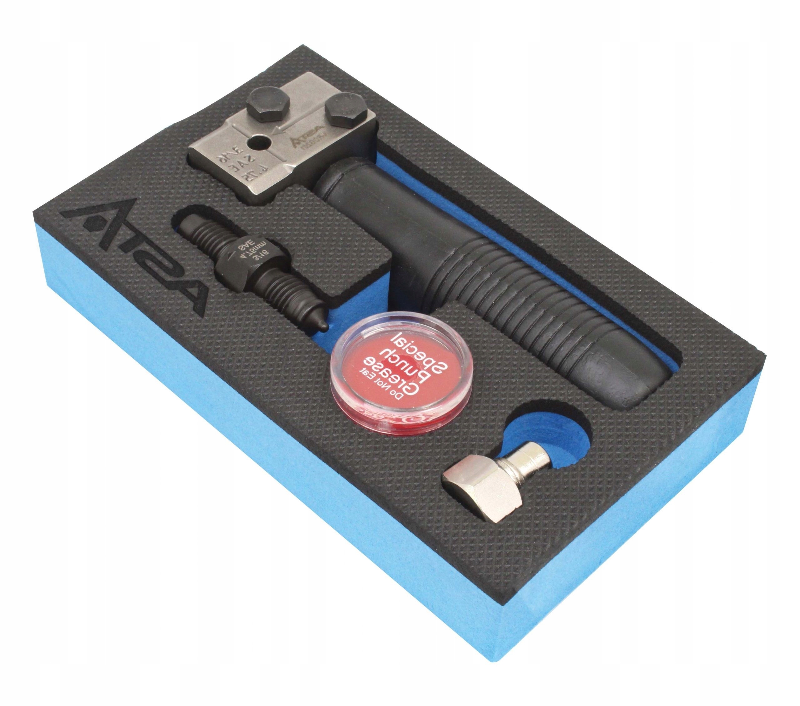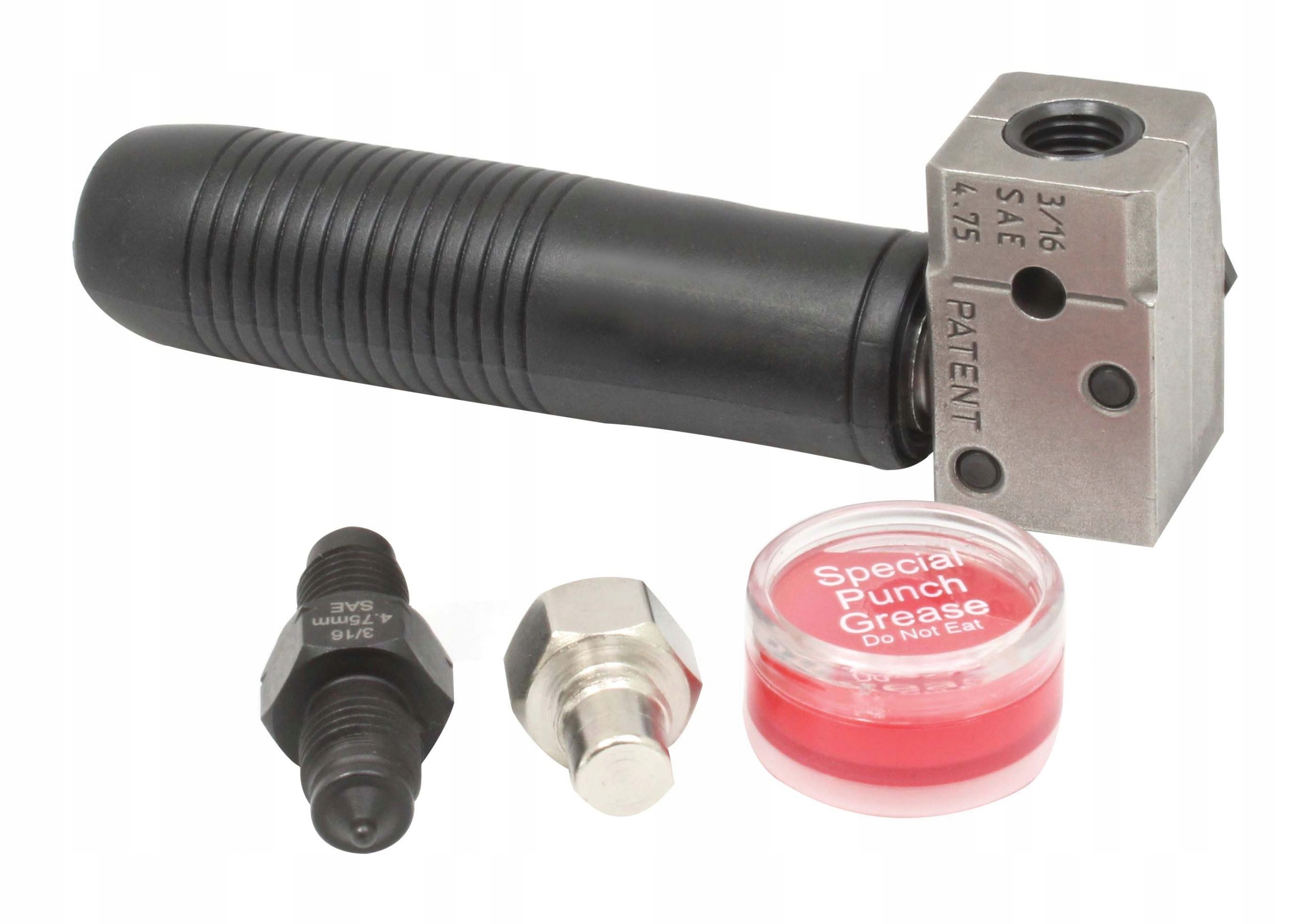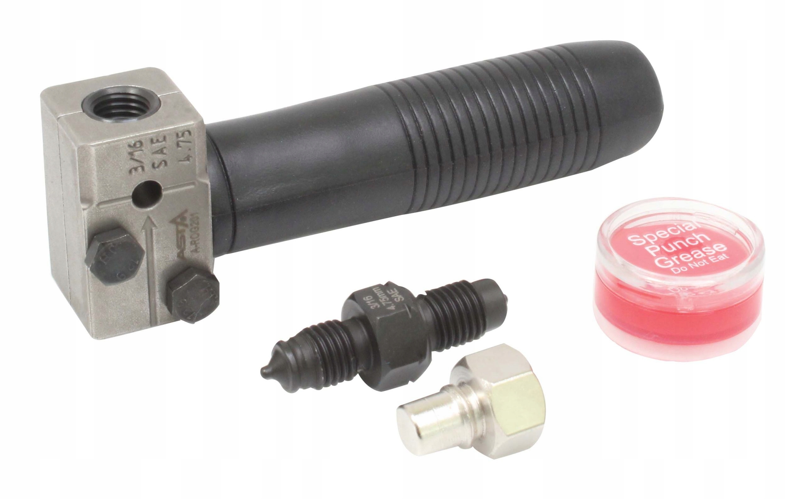- Включає інструмент для розвальцьовування, двосторонній пуансон OP1/OP2, мастило для матриці та позиціонуючий гвинт.