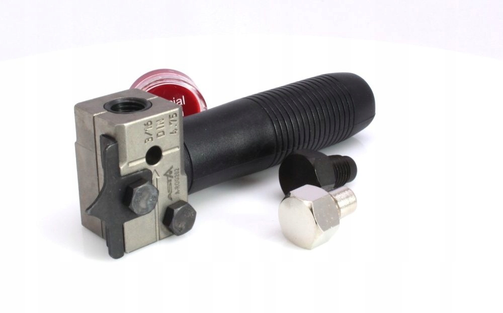 - Набір містить інструмент для розвальцьовування, односторонній пуансон OP1, мастило для матриці та позиціонуючий гвинт.