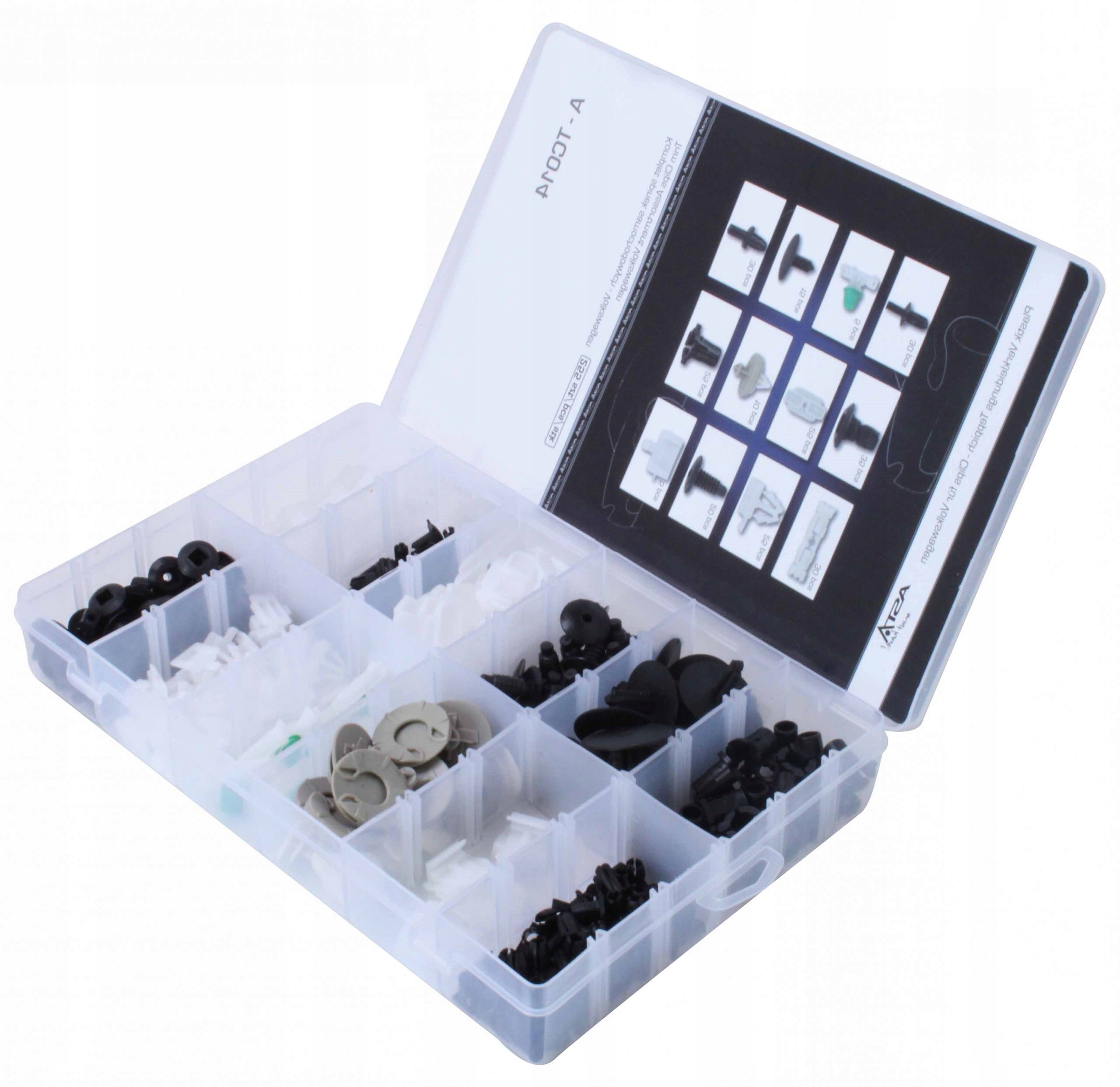 - Набір 12 різних типів затискачів, включаючи затискачі для кріплення, засувки, люверси, фіксуючі затискачі, затискачі для планок.