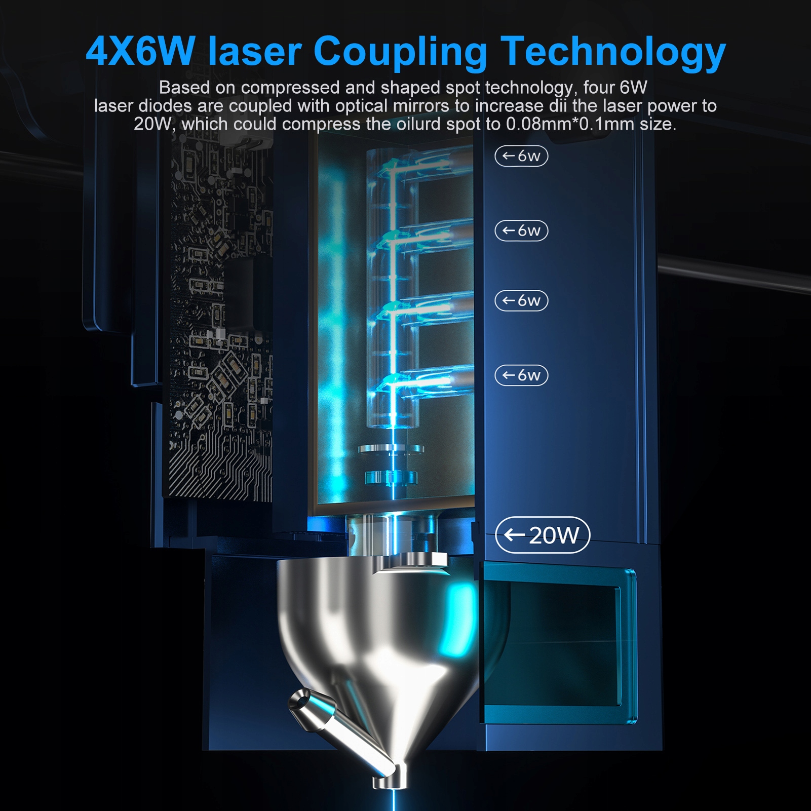 ✨1. Надвисока потужність: перший у світі професійний лазерний гравірувальний верстат із оптичною потужністю 20 Вт. Новітня технологія чотиристороннього лазерного з’єднання потужністю 6 Вт є потужною та може водночас різати дошку павловнії товщиною 10 мм чорну акрилову пластину товщиною 8 мм або навіть пластину з нержавіючої сталі товщиною 0,05 мм.