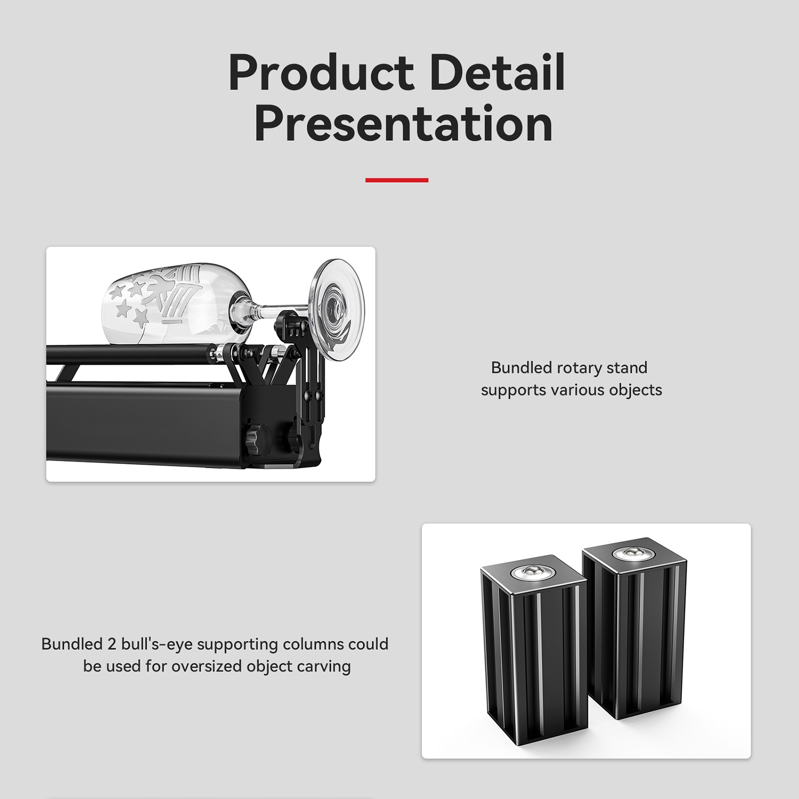 1. Швидко та зручно збільште розмір гравіювання: просто замініть вал редуктора гравірувальної машини серії ATOMSTACK, щоб отримати велику площу гравіювання 850*400 мм, не купуючи жодних додаткових аксесуарів для задоволення ваших потреб у гравіруванні великої площі.