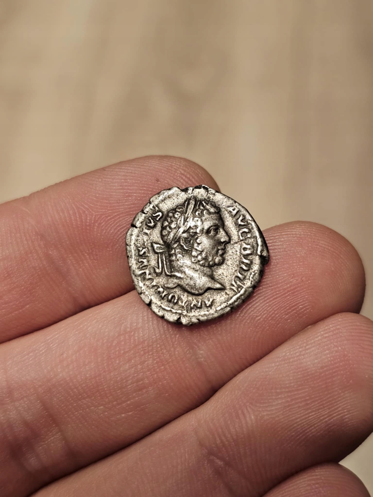 Рідко! Каракалла, денарій у формі слона, викарбуваний у 212 році. Ціни на ці монети в будь-якому пристойному стані починаються від 250 євро на аукціонах. BMC 47; Coh. 208; RIC 199. 2,85 г/19,5 мм. Ставлю оцінку III