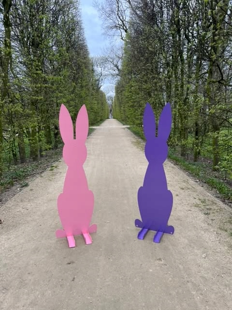 Вирівняйте нижню частину зайчика з нижньою частиною решти та вставте так, щоб вона повністю входила всередину, щоб заєць міг стояти. Під час розміщення замовлення ми також можемо надіслати інструкції, але це дуже просто!