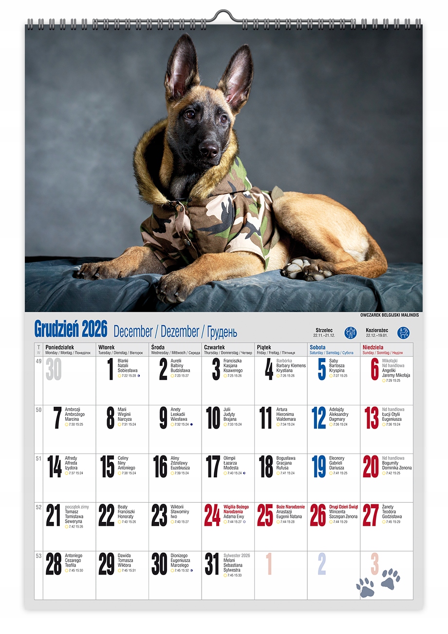 А3 Календар 2026 МІСЯЧНИЙ настінний 32х47 см ВД.12 СОБАКА Вірний друг