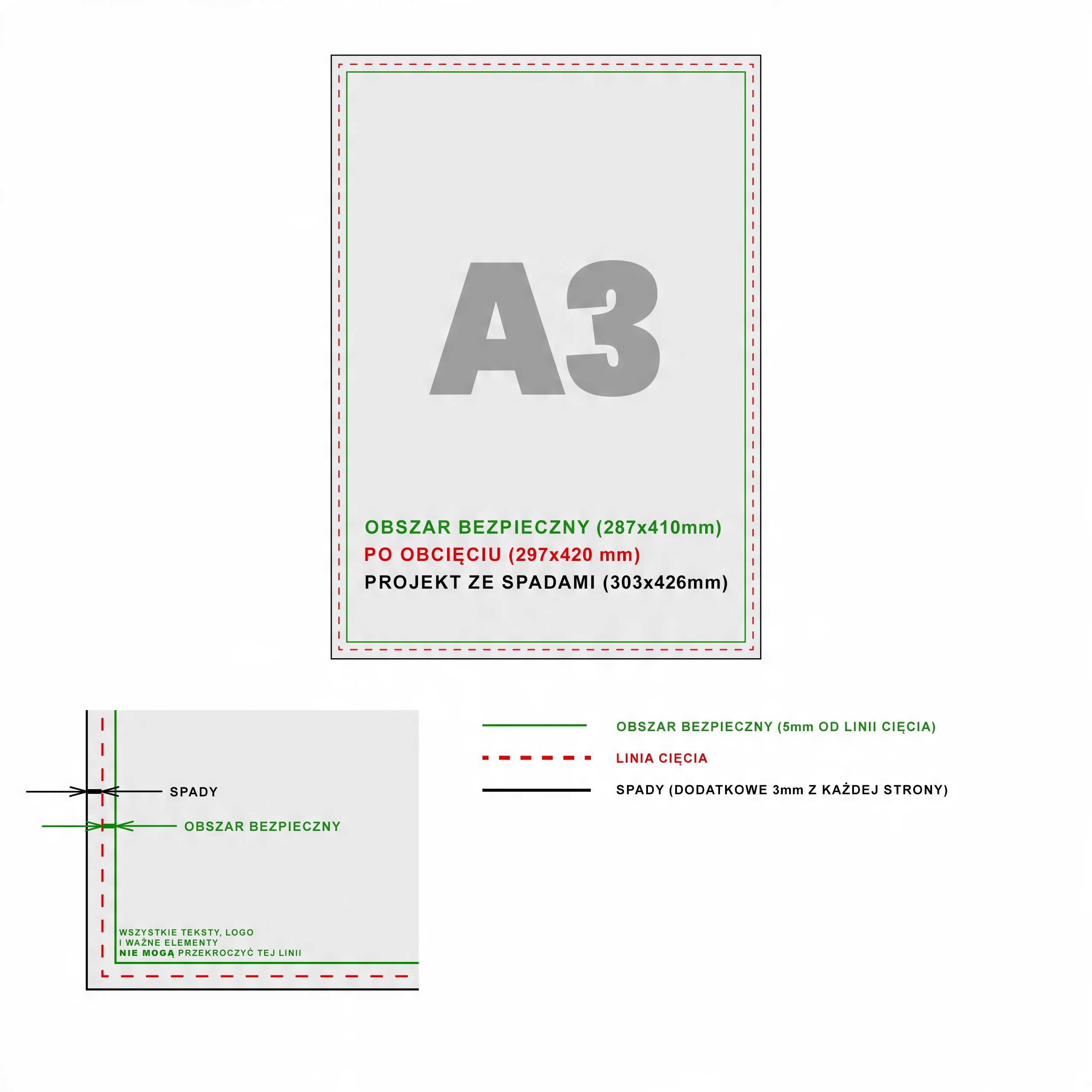 - Усі файли мають бути збільшені з обрізами: 3 мм з кожного боку, що дає площу 303x426 мм. . 5 мм - розміщено в полі 287x410 мм