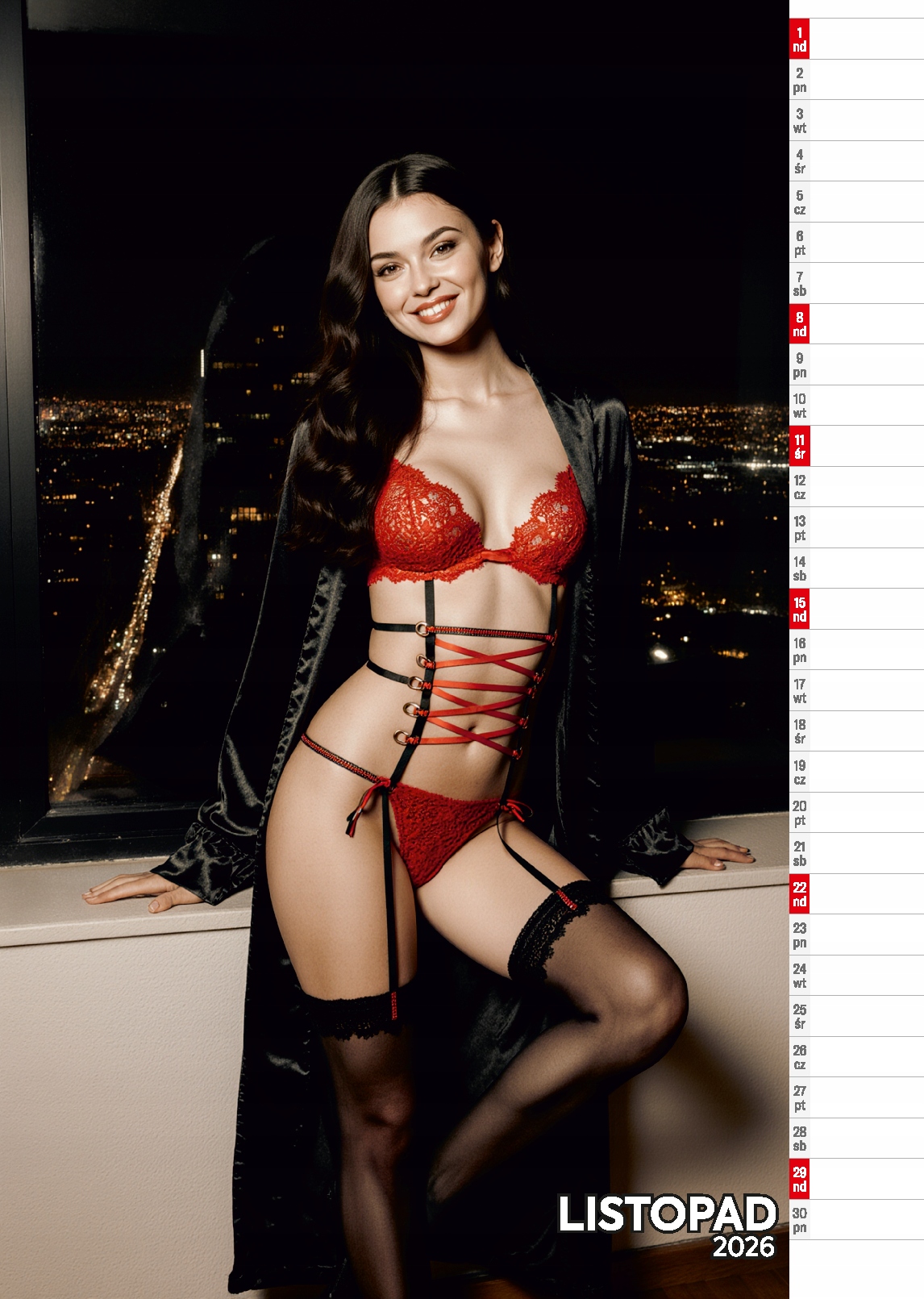 Унікальний настінний календар у форматі A3 для 2026 року, який поєднує в собі прекрасні дівчата, чудову нижню білизну та знаковий супер.