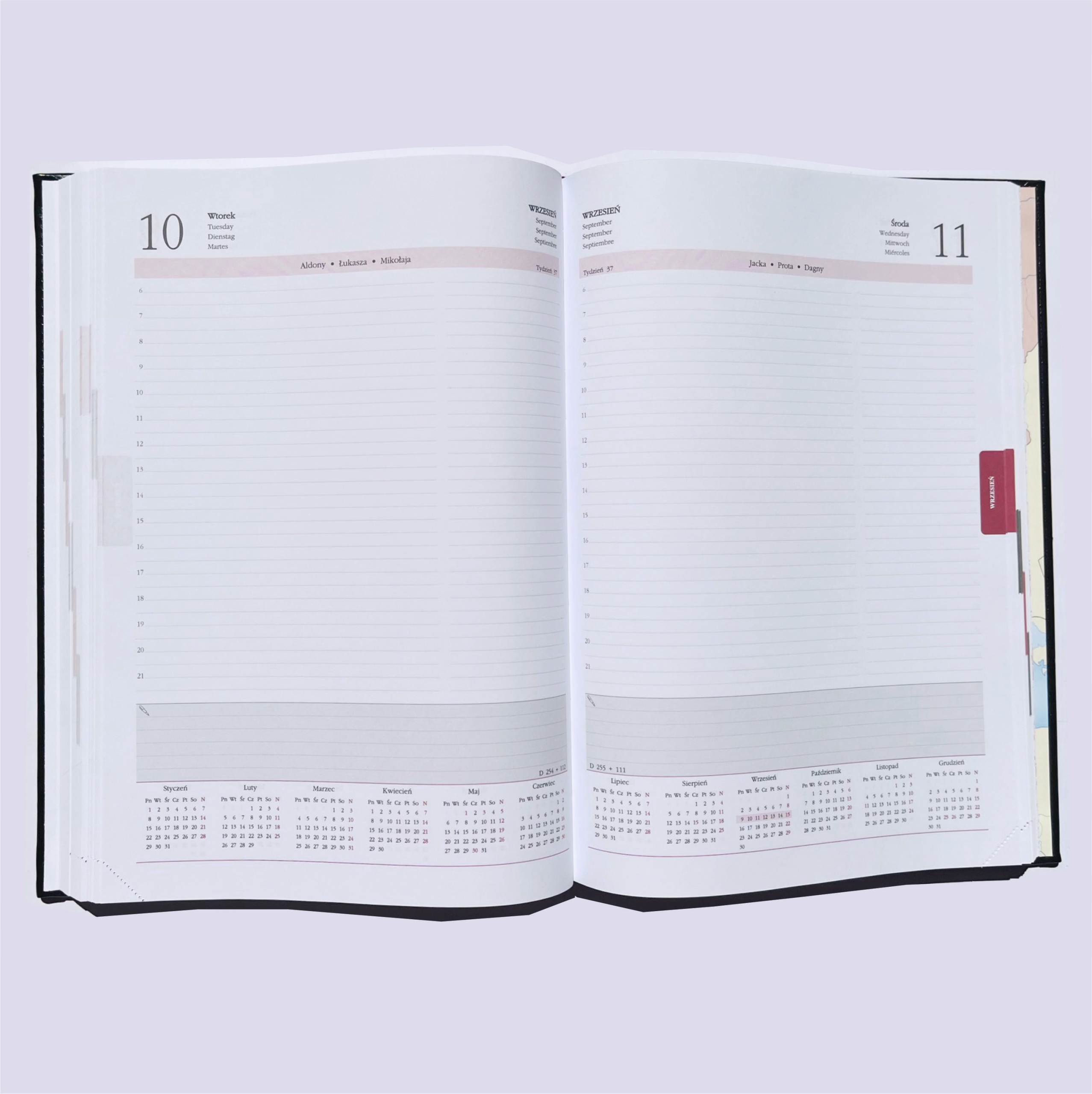 Це і є наш продукт, завдяки якому ви зможете не тільки спланувати свій день (навіть з точністю до години!), але й знайти багато корисної інформації, яку варто мати під рукою, зокрема: наприклад, іменини чи свята. Однак всередині приховано набагато більше, переконайтеся самі! Крім того, стильна м’яка обкладинка незмінного чорного відтінку ідеально підходить як жінкам, так і чоловікам :)