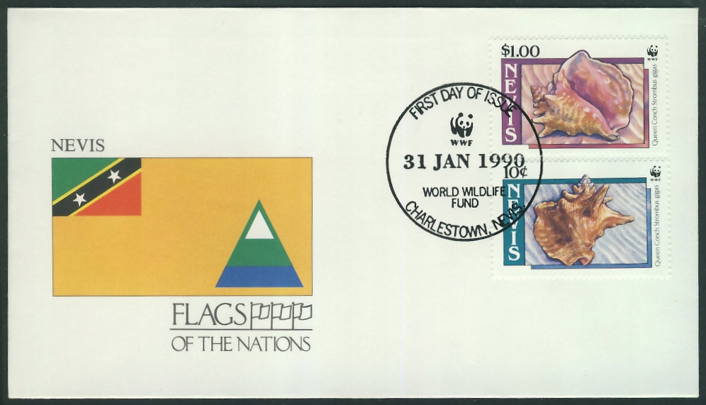 A558 NEVIS 1990 Shells / Flag Plaps of Nations