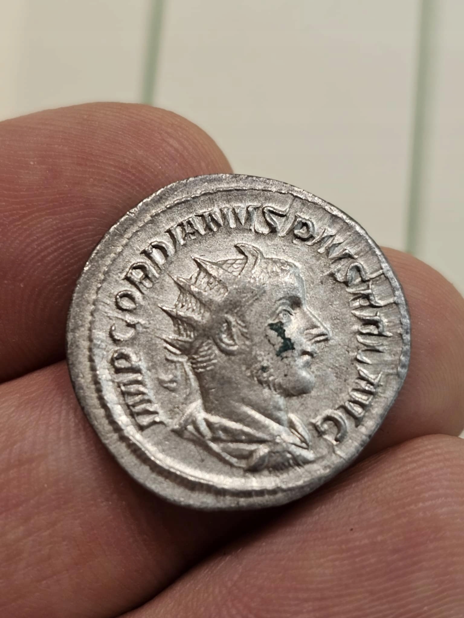 Гордіан III, антоніан із Марсом (MARS PROPVG), карбований у 243-244 роках нашої ери, RIC 147. 3,41 г/22 мм. Гарні деталі та іконографія, оцінюю III+, мінімальний наліт на щоці, ймовірно, з ПВХ-фольги