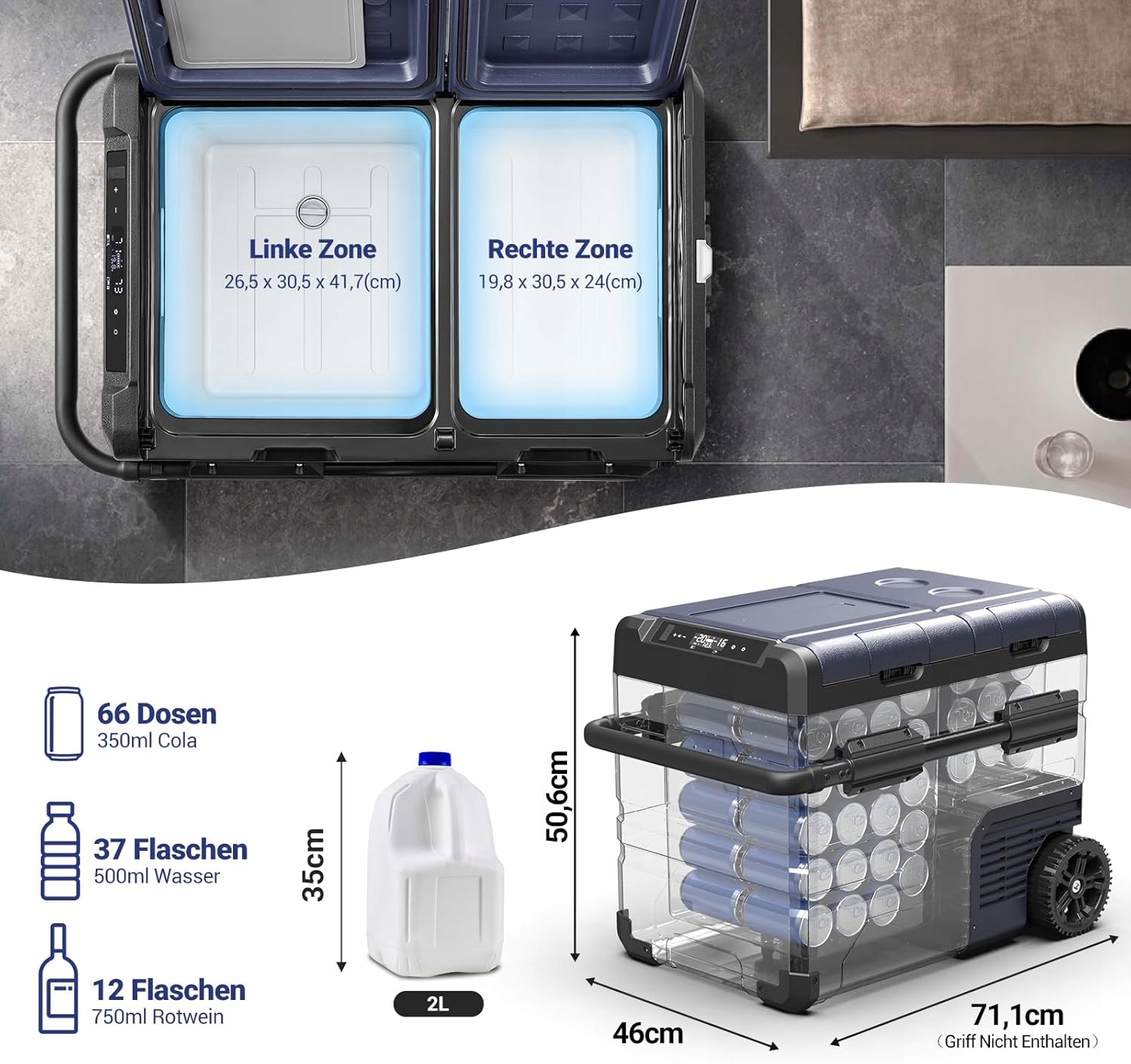 ➡ Утиліта: до 66 банок, 37 пляшок води або 12 пляшок вина