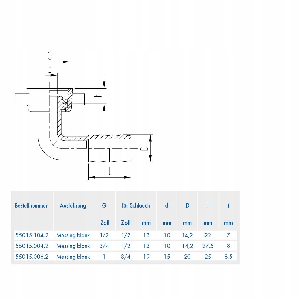 ABA Beul 55015.104.2 Кутовий фітинг для шланга з барашковою гайкою, латунь, 1/2 x 13