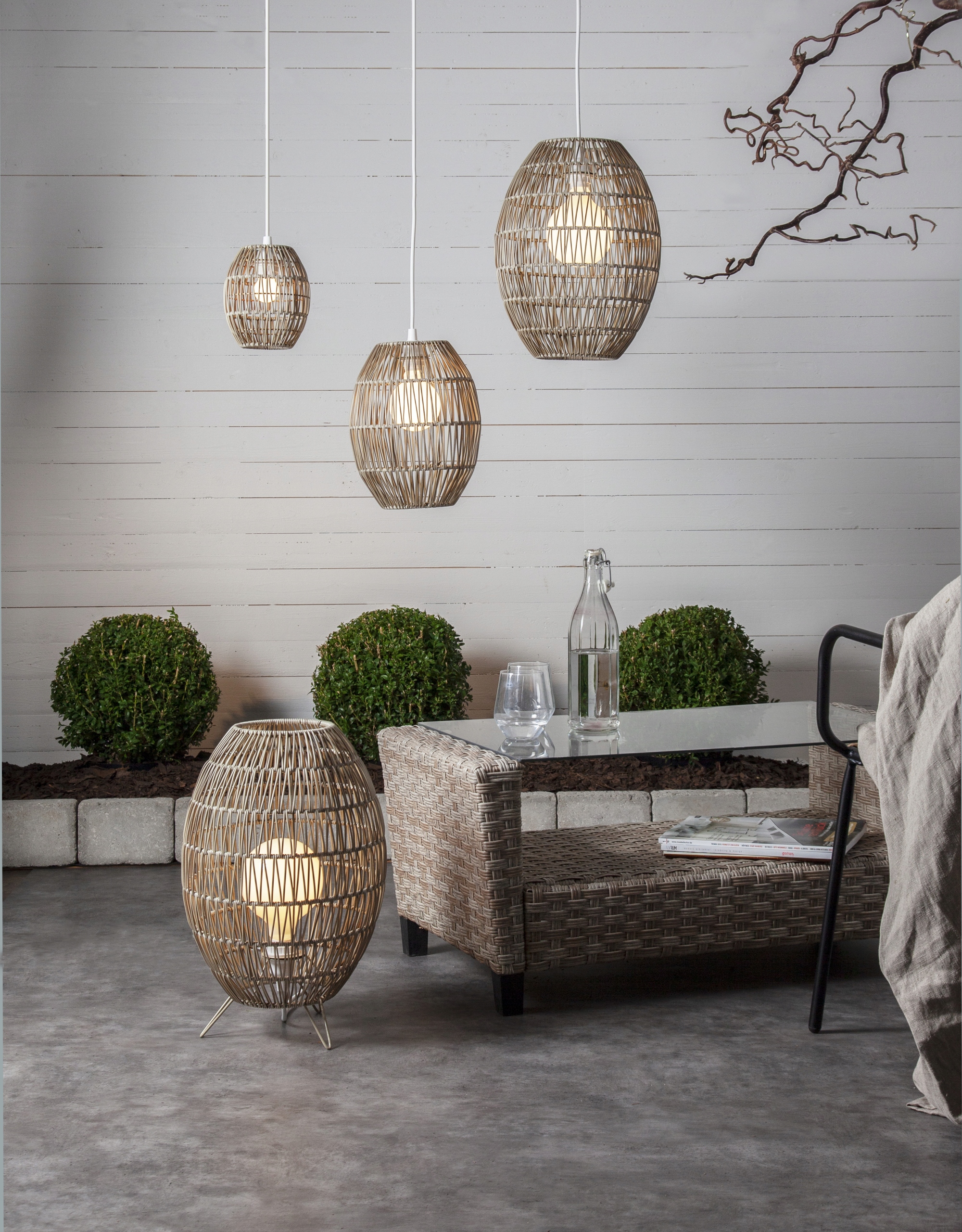 Абажур виготовлений з атмосферостійкого штучного ротанга: IP44.