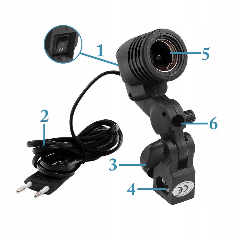 Професійний одиночний патрон для студійних світильників і парасоль - різьблення E27, вимикач на голову
