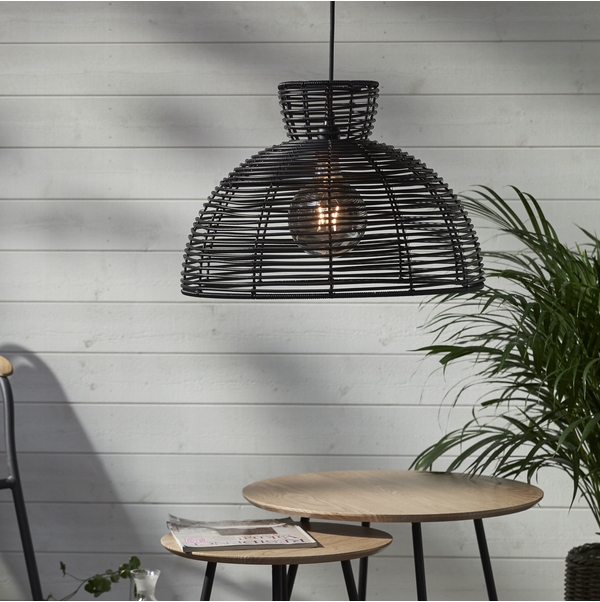 Гарний і привабливий абажур зі штучного ротанга, адаптований до зовнішніх умов: IP44. Усі шнури з розетками E27 IP44 довжиною 2,5 та 5 м, які є в нашій пропозиції, підходять до абажура. Всередині абажура є патрон E27. Шнур повинен мати гніздо з гайкою