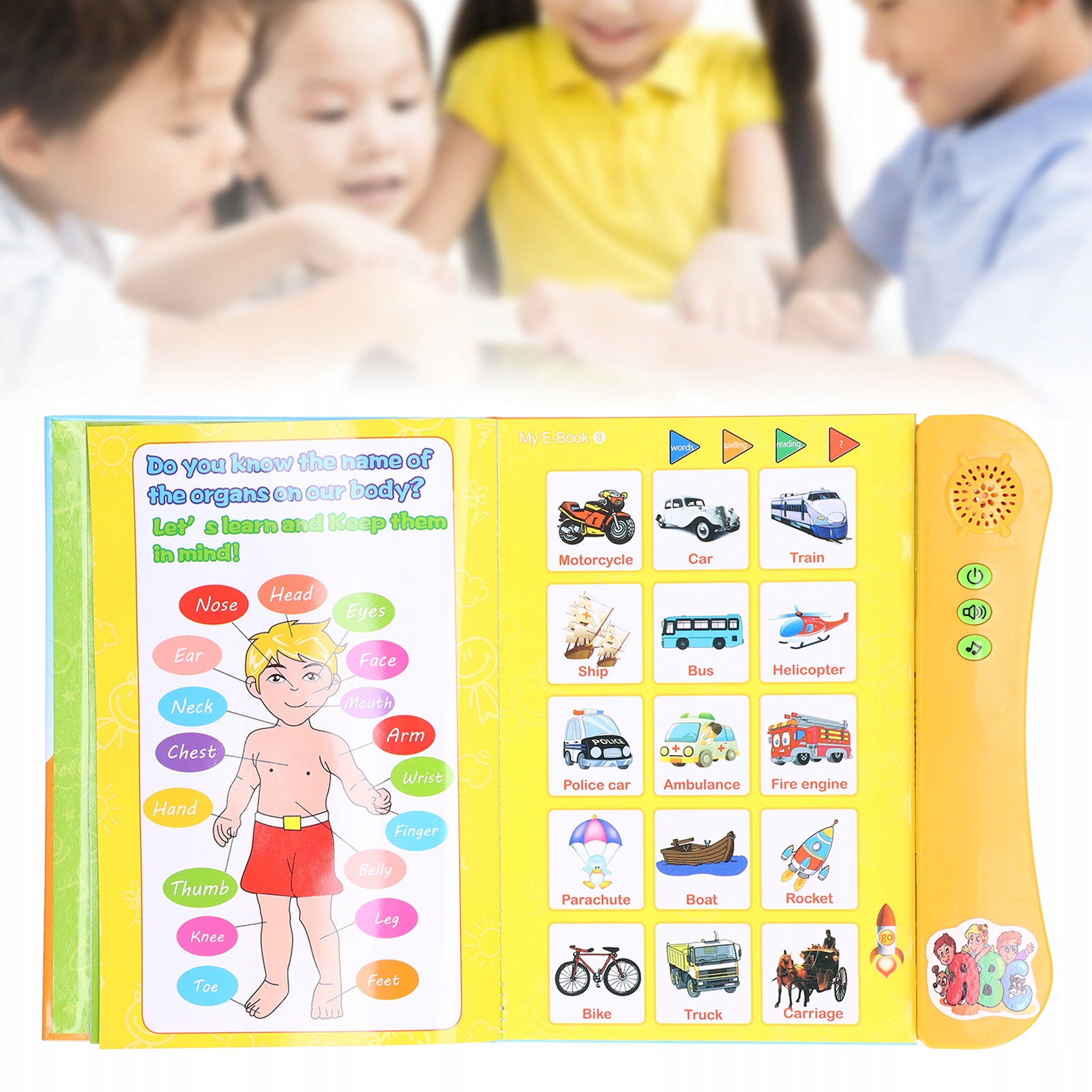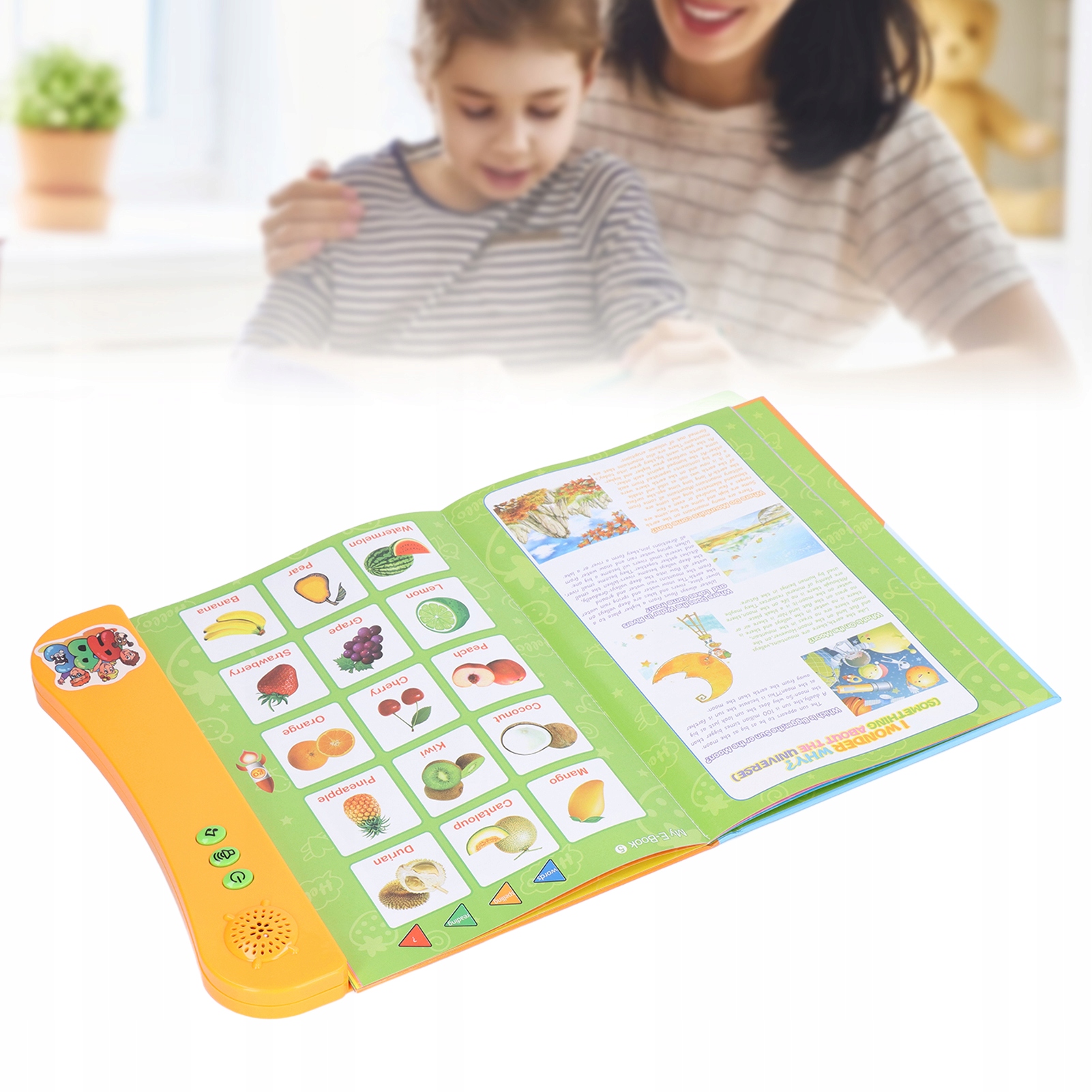 1. Ця книга допомагає дитині вивчати англійську мову за допомогою фотографій та звуків, орфографії та відповідної сови, структури людського тіла, транспортних засобів, овочів, фруктів, висихання історії та не тільки.