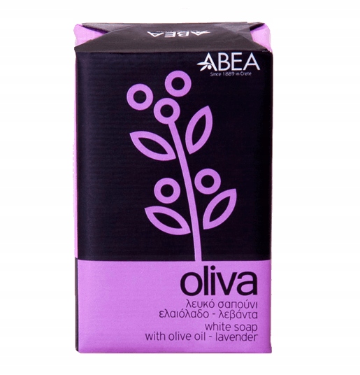 Біле оливкове мило ABEA 125гр: оливкова олія з лавандою. Серія OLIVA. Оригінальний грецький продукт прямо з Криту!