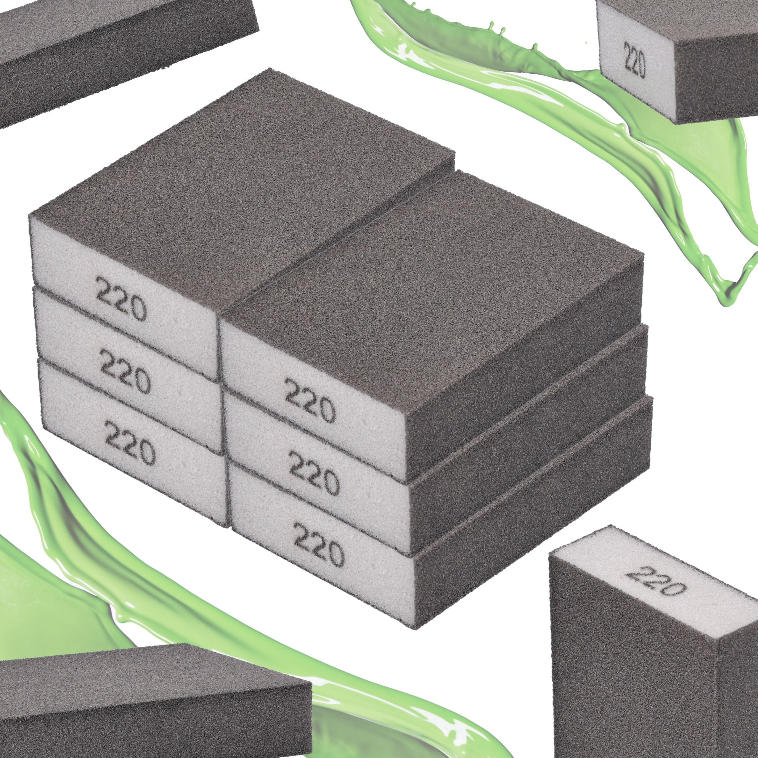 ✅ Пропонуємо набір з 6 високоякісних абразивних губок (шліфувальних кубиків) з градацією P220, які виготовлені з щільного, міцного поролону та міцного абразивного матеріалу. Таке поєднання гарантує не тільки ефективність роботи, але й тривалий термін служби та стійкість до пошкоджень.
