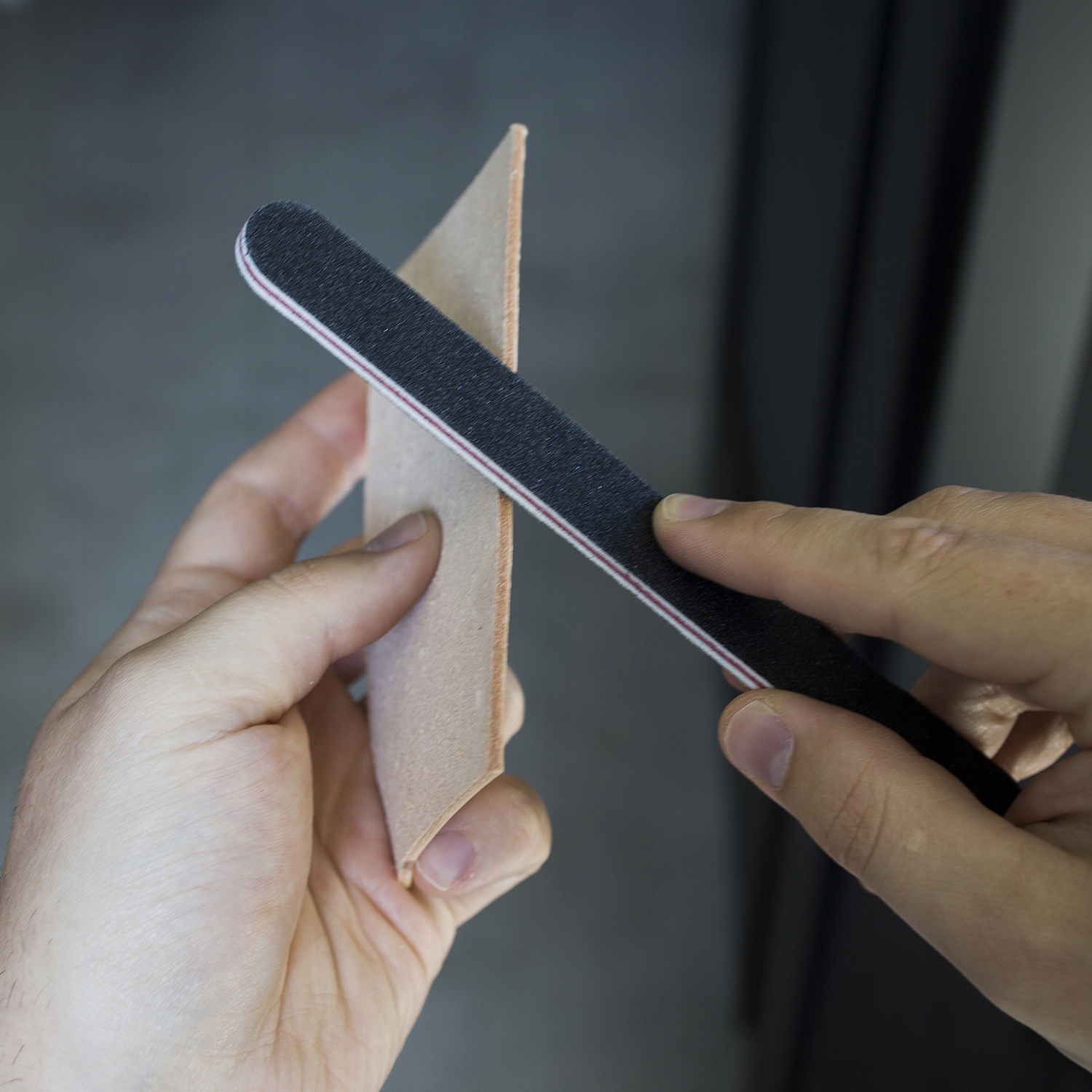 Ефект: Використовуючи абразивні палички, краї шкіри стають гладкими та естетичними, що надає професійному вигляду кожному продукту.