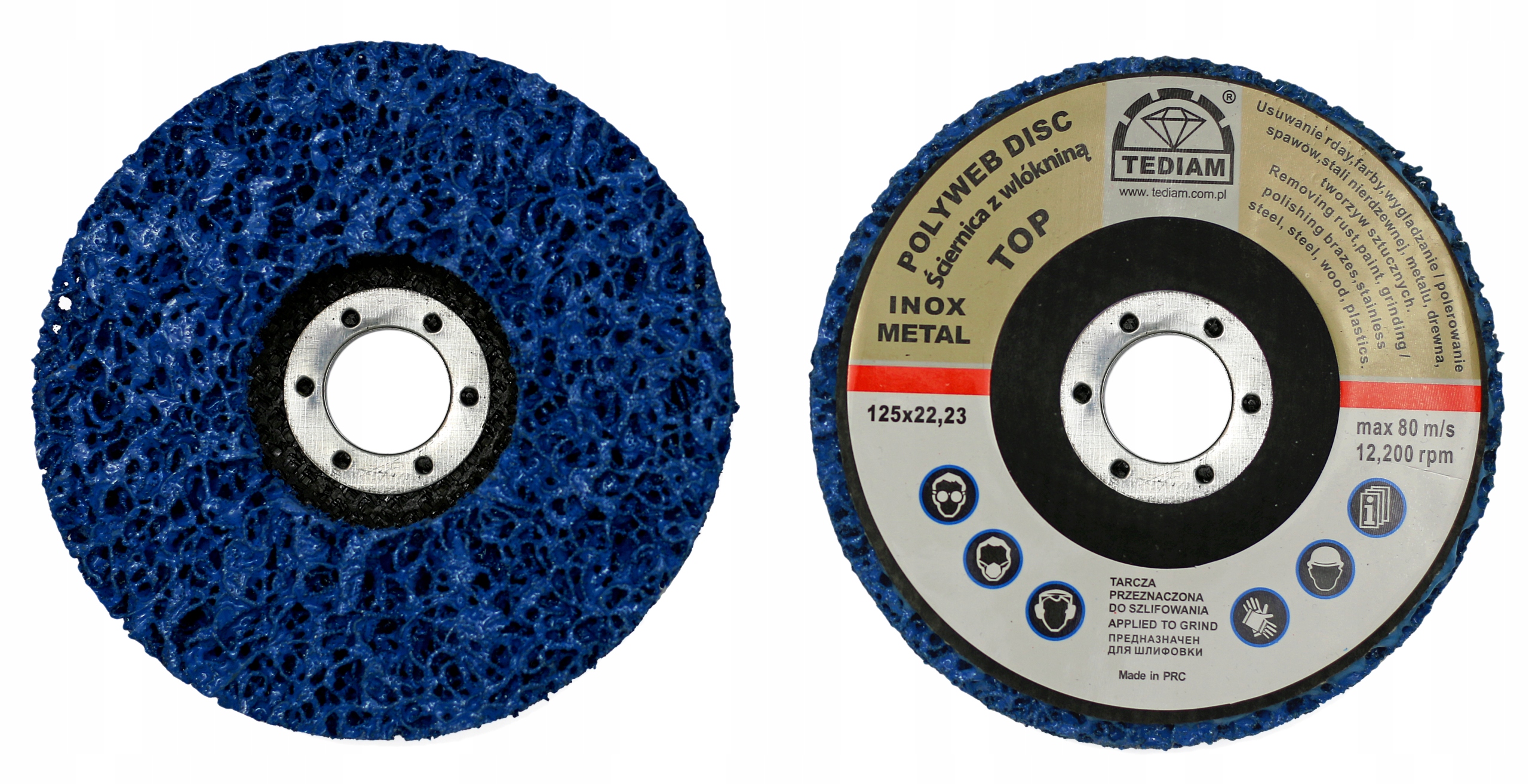 Шліфувальний круг TEDIAM виготовлений з високоякісного товстого та щільного флізеліну. Універсальний диск призначений для механічного видалення, полірування, згладжування та натирання, серед іншого. метал, кислотостійка сталь, нержавіюча сталь, дерево, пластик та інші.