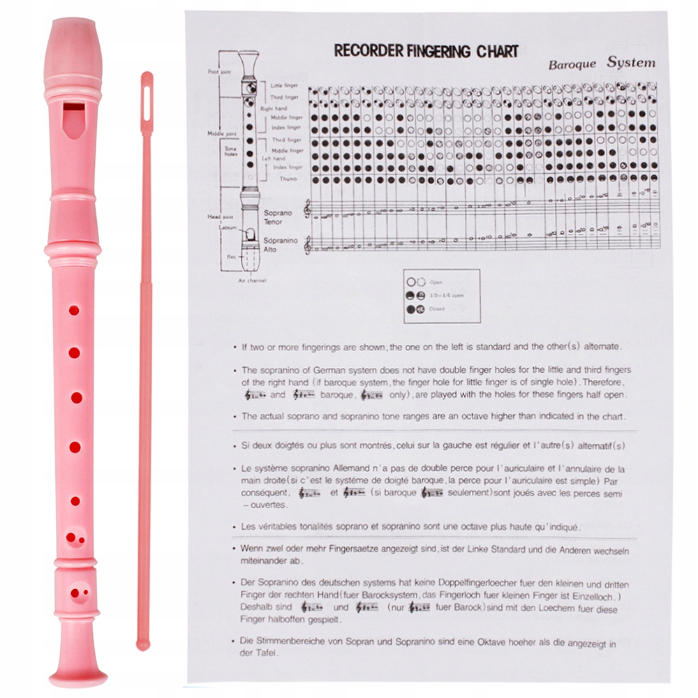 - Включно з палицею для чищення, щоб полегшити чищення блокфлейти сопрано.