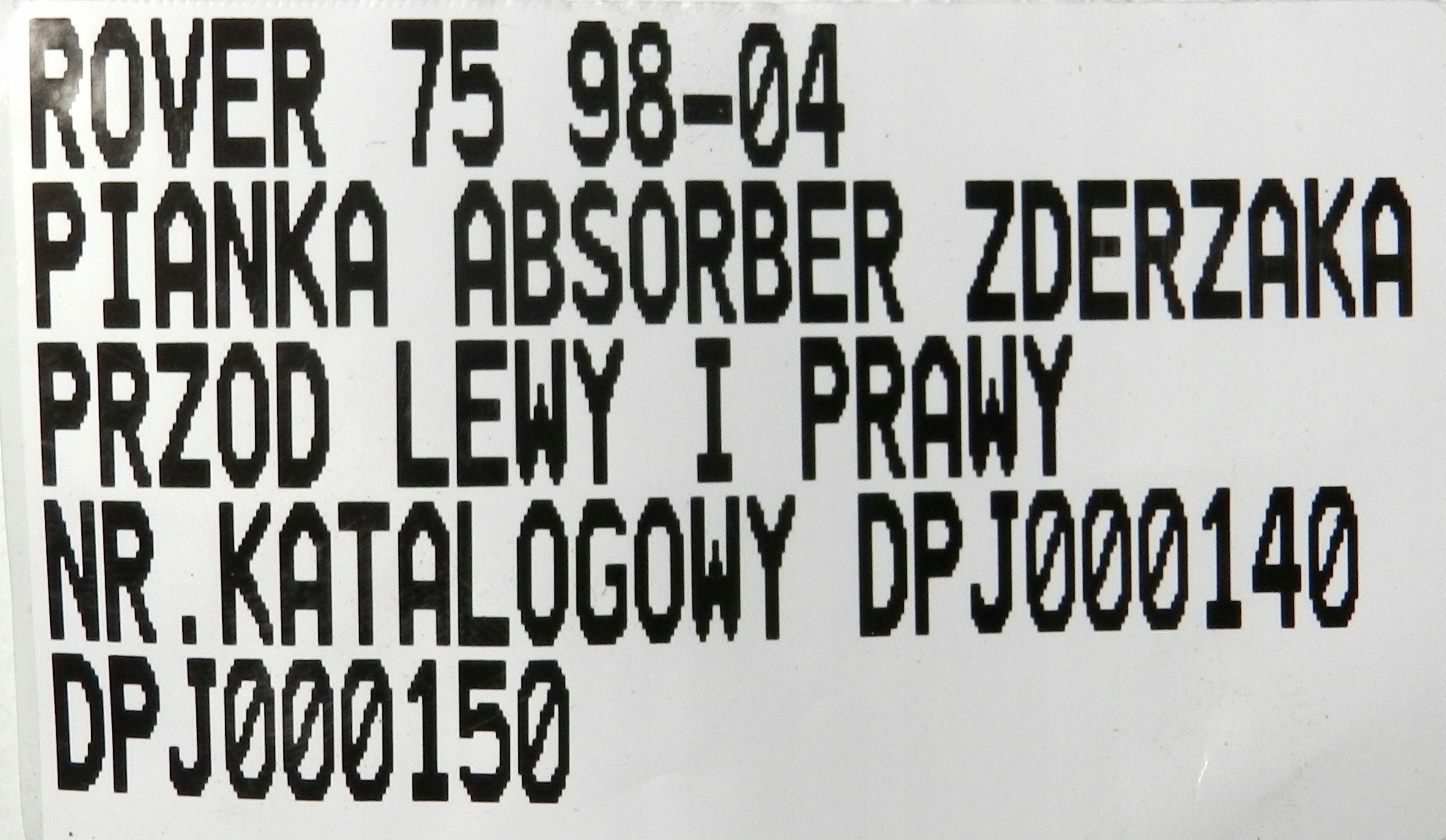 АБСОРБЕР ПІНОПОРОЛОВИЙ БАМПЕР ПЕРЕДНИЙ ROVER 75 98-04 DPJ000140 DPJ000150