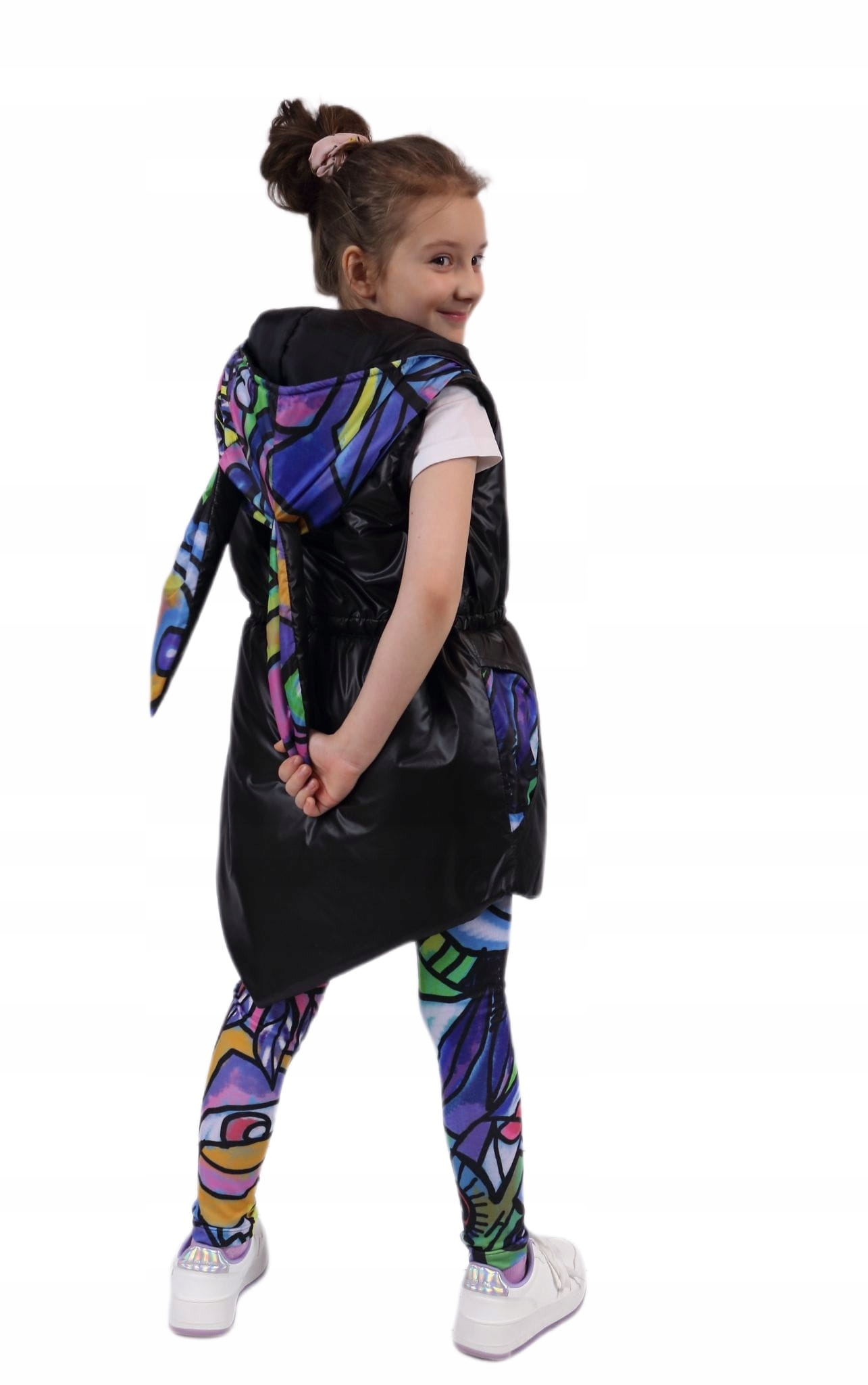 жилет для дівчат - барвиста абстракція - це пропозиція для дівчат, сповнених енергії та шалених ідей. Чорний колір дуже популярний і з’являється все частіше в колекціях дітей. У поєднанні з мега кольорами він набуває оригінального вигляду, додатково божевільні кроликові вуха з’явилися поруч із капюшоном. Жилет - ще одна наша пропозиція з дуже популярної колекції абстракції.