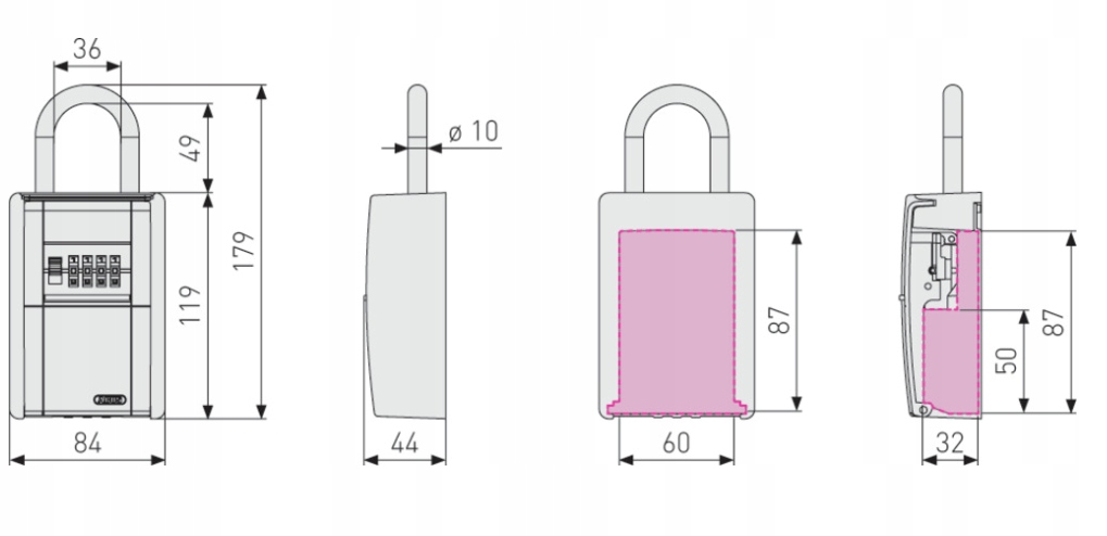 Суцільний металевий корпус і кришка з литого цинку захищають кілька ключів і кредитних карток від несанкціонованого доступу, коли це необхідно. Пластиковий клапан додатково захищає комбіновані каблучки від погодних умов.