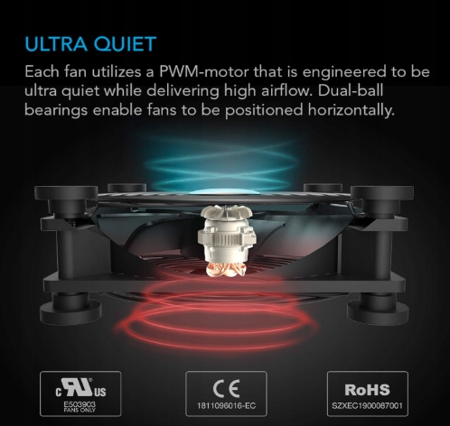 - Розміри вентилятора: 14 х 14 х 2,5 см. | Потік повітря: 57 CFM | Шум: 18 підшипників турботи: подвійний куля