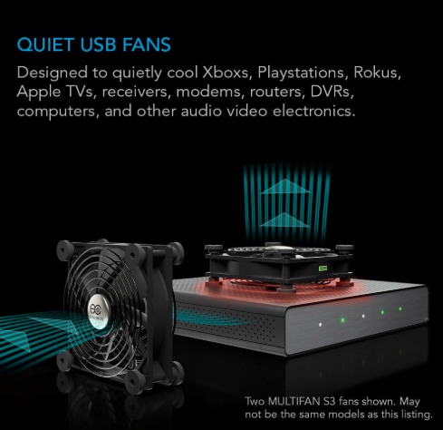 - USB -пробка може постачати вентилятор через USB -порти, що стоять за популярними консолями AV Electronics та Gaming.