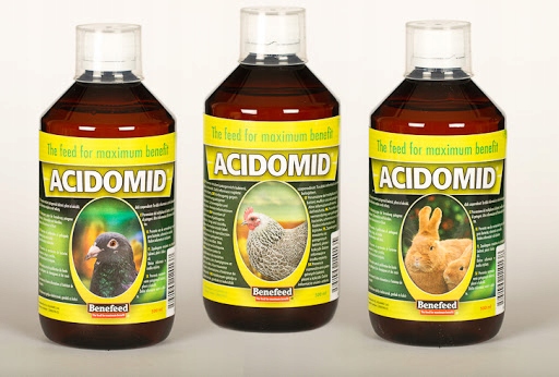АЦИДОМІД Д призначений для розведення курей, декоративних курей, фазанів, водоплавної та перепелів. Ацидомід D містить усі необхідні органічні кислоти і, як єдиний засіб такого типу на ринку, глюкозу та оптимально підібрані пропорції мінеральних речовин, необхідних для стимуляції обмінних процесів та підвищення імунітету організму.