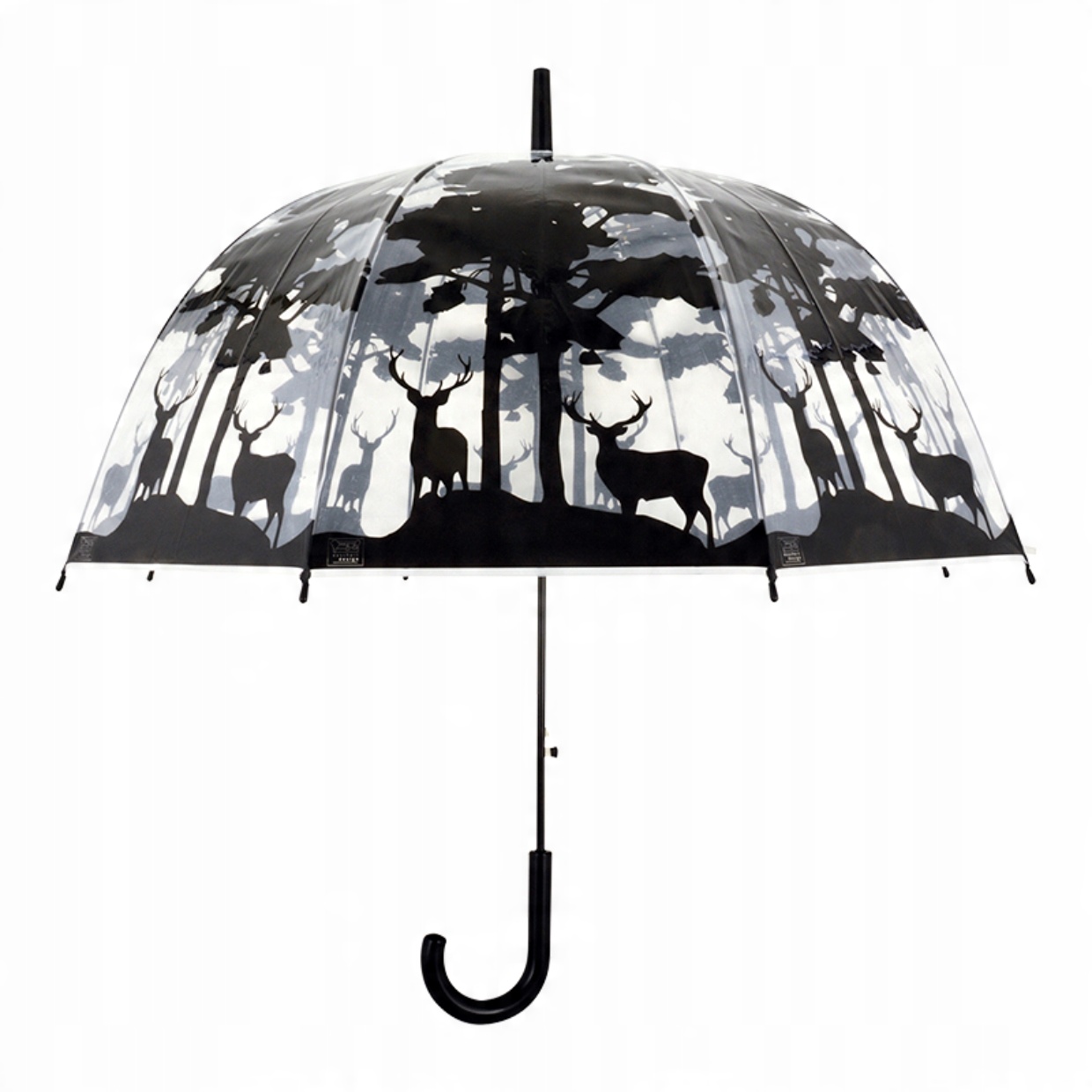 Оригінальна прозора парасолька з мотивом чорного лісу та оленів. Ідеальний подарунок для любителів природи.