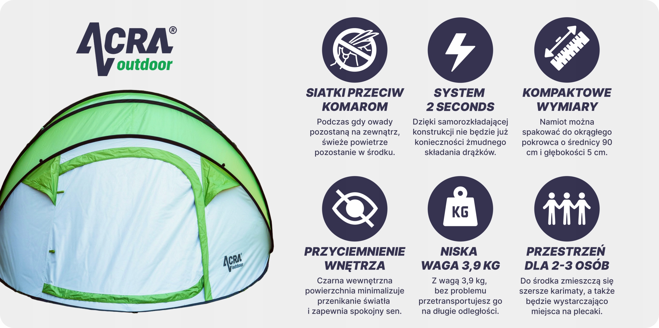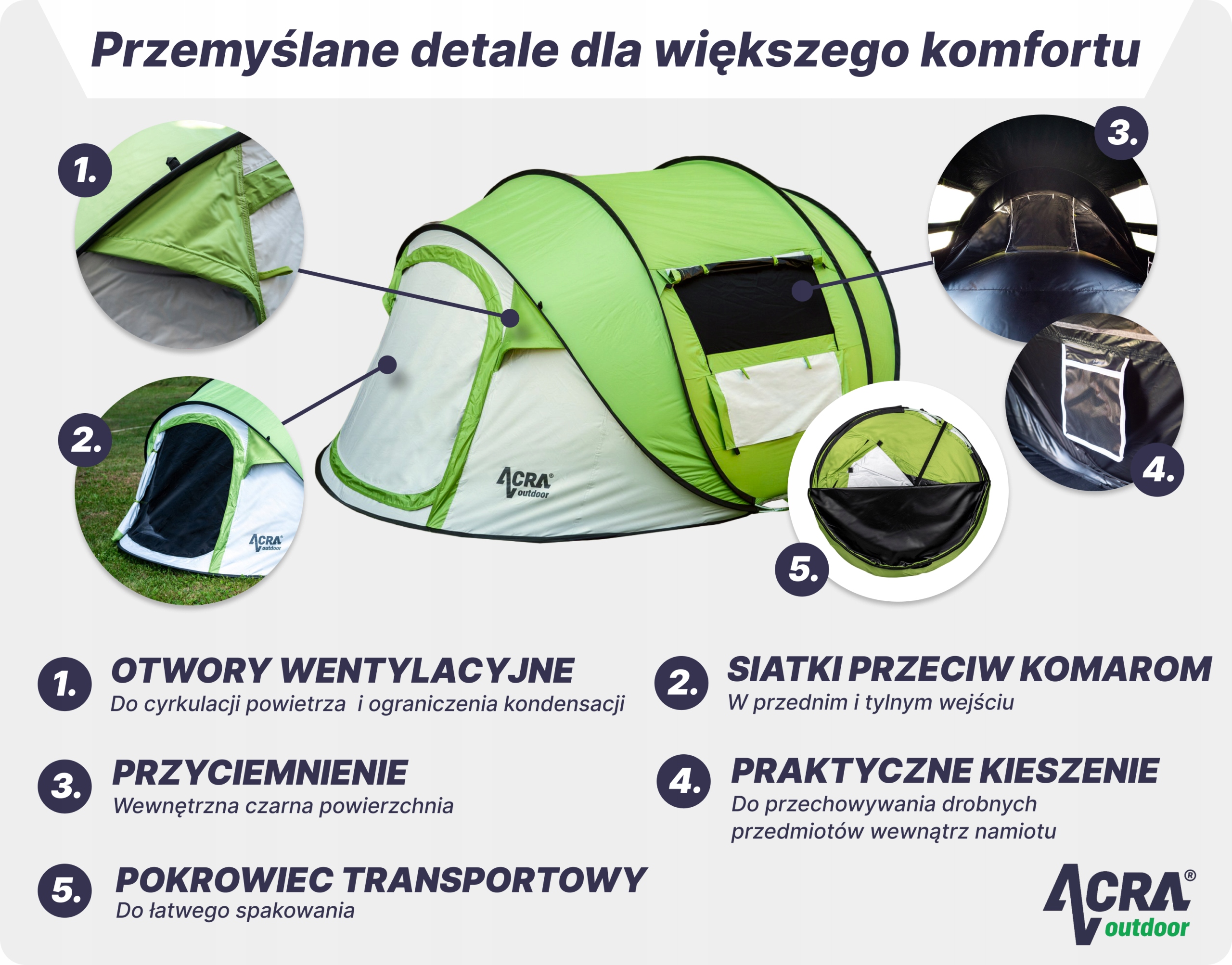 Намет ST30 ACRA на відкритому повітрі - ідеальне рішення для всіх, хто шукає легкого відстані, великого спального простору та надійного захисту від погоди.