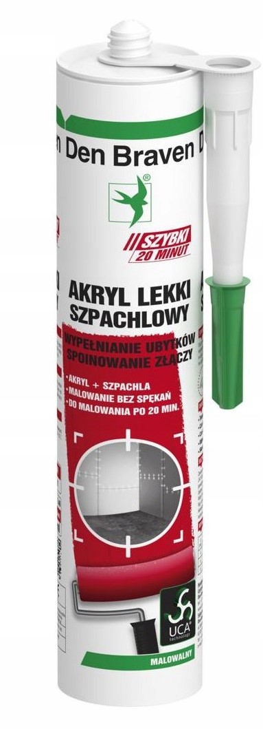 Акрилова легка шпаклівка Den Braven — це надлегка, ідеально біла, готова до використання акрилова шпаклівка, яка швидко фарбується в системах сухого будівництва внутрішніх приміщень, розчинів, заповнення дефектів, ремонт подряпин, тріщин, закладення швів і тріщин у штукатурці, гіпсокартонних плитах і блоках.