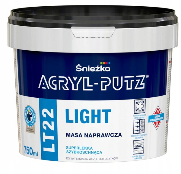 ACRYL-PUTZ® LT22 LIGHT - це ультрасучасна ремонтна маса - новинка на польському ринку. Має надзвичайно малу власну вагу (щільність 0,4 г/см³). Маючи малу вагу, він має унікальні фізико-хімічні властивості.