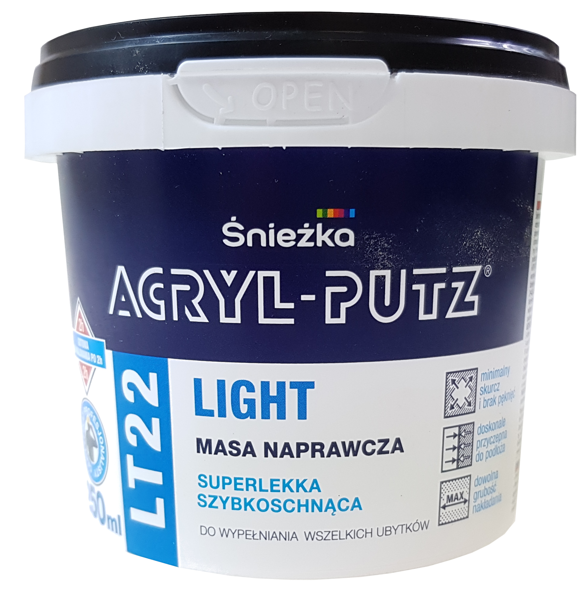 ACRYL-PUTZ® LT 22 LIGHT – білосніжна готова до використання ремонтна маса на основі ультралегких наповнювачів із широким спектром застосування. Не виявляє усадки. Особливо рекомендується для швидкого заповнення подряпин, дефектів, тріщин і створення швів незалежно від типу основи.