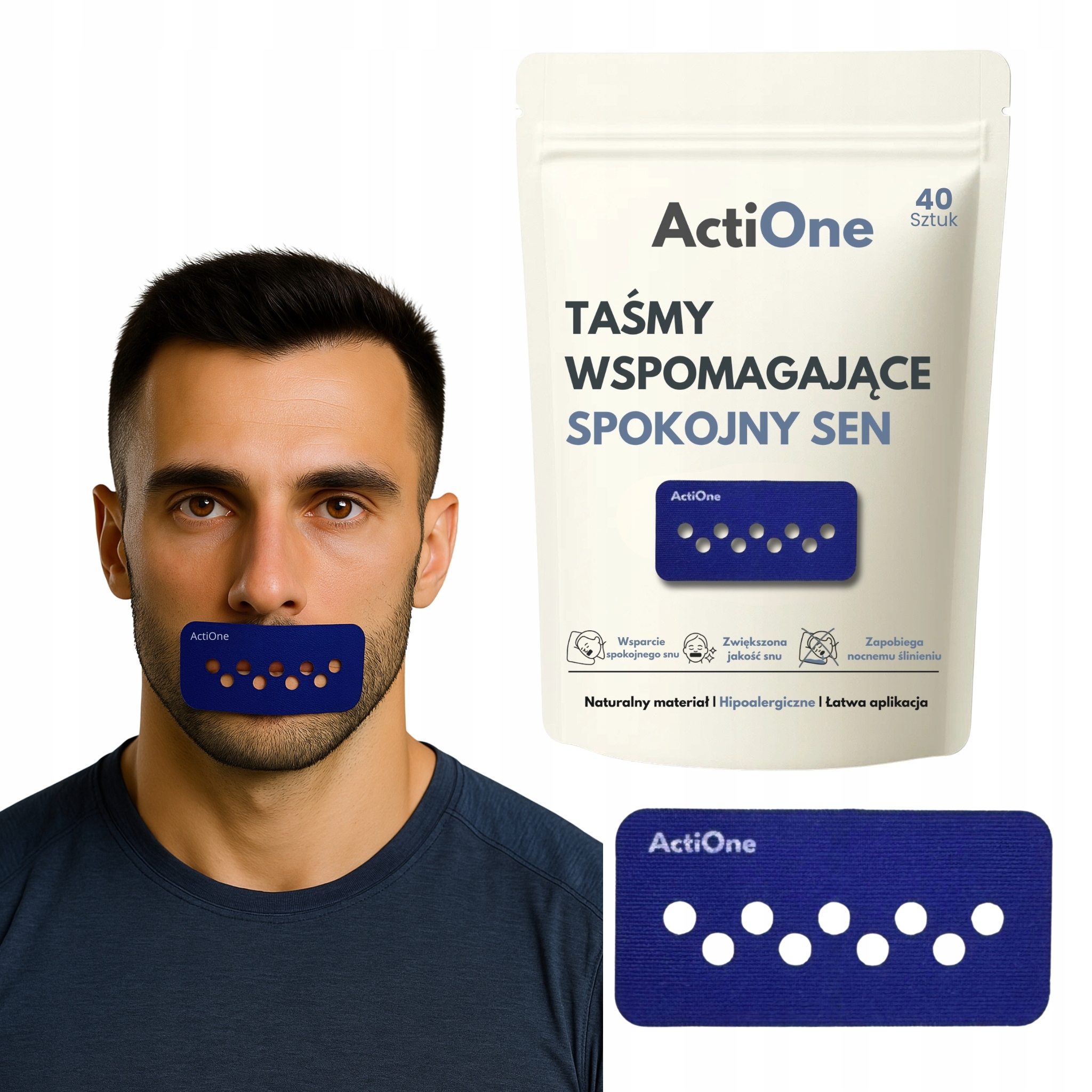 ACTIONE СТРІЧКИ ДЛЯ ГУБ З ДІРОЧКАМИ ДИХАННЯ ХРОПІННЯ СОН СПОРТ 40 ШТ