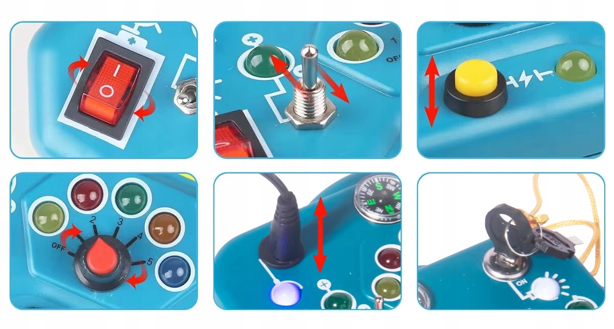 Щоб запустити панель, підключіть 2 батареї типу ААА, а потім поверніть ключ. Після ввімкнення запалювання відкриються інші параметри відтворення. Виготовлений із матеріалів найвищої якості, він забезпечує безпеку та довговічність, а також пропонує інтерактивний спосіб навчання, який залучає почуття та розвиває ручні навички