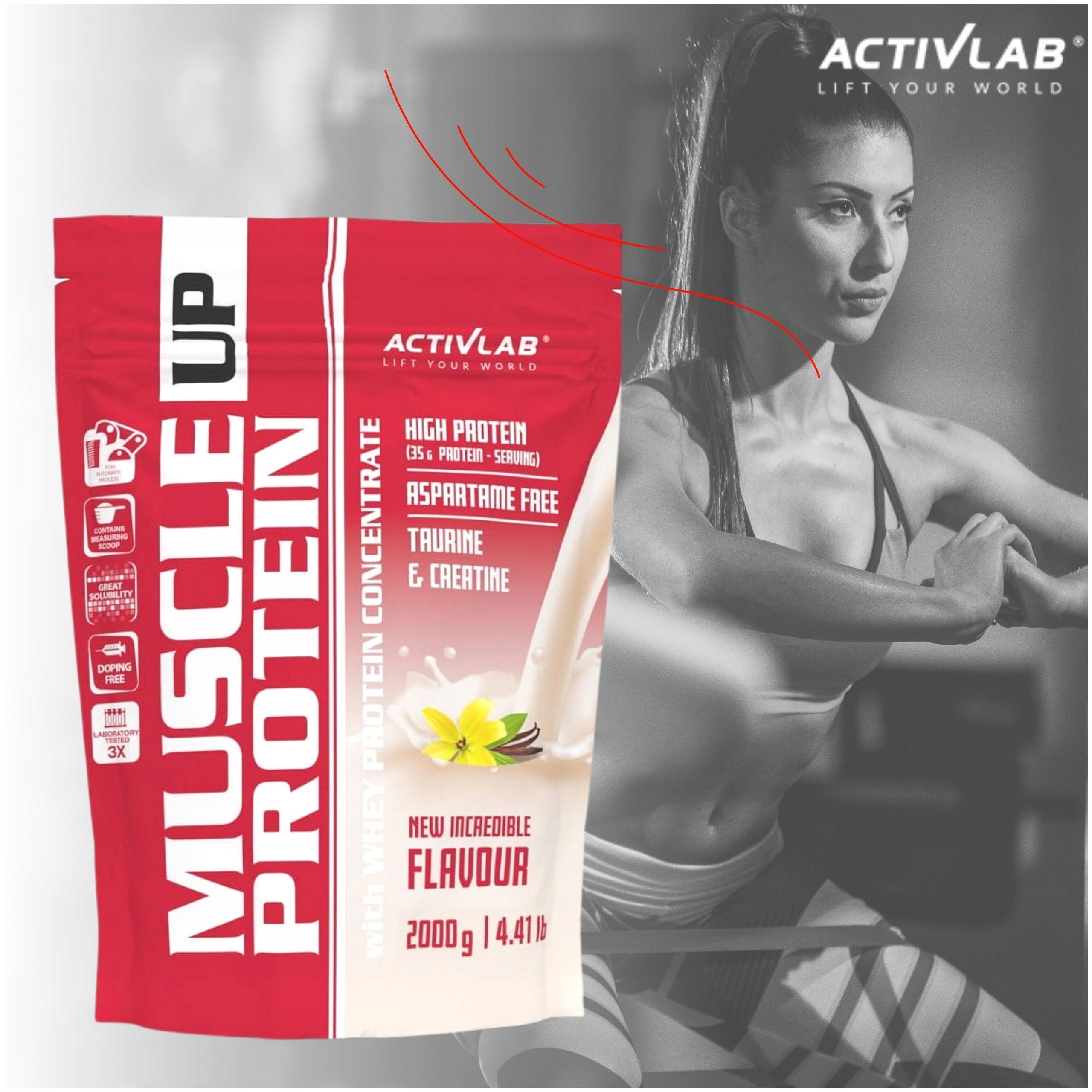 Протеїн Muscle Up від Activlab є чудовим джерелом високоякісного сироваткового білка, збагаченого креатином і таурином для кращої продуктивності. Ці білки отримують в процесі ультрафільтрації, яка очищає сироватку від жиру і лактози. Протеїнові добавки, багаті сироваткою, значно впливають на процес нарощування маси. Наявність двох інгредієнтів, а саме таурину та креатину, має велике значення для ефективності цього продукту. Креатин є елементом м'язової тканини, а таурин стимулює та додає енергії.