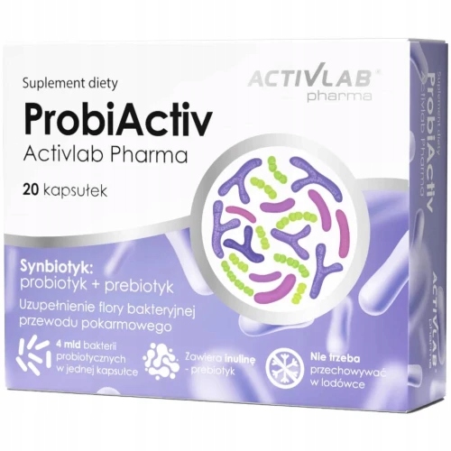 ProbiActiv ActivLab Pharma – це дієтична добавка у формі капсул. Препарат містить композицію з 4 штамів пробіотичних бактерій та інулін. Продукт ProbiActiv ActivLab Pharma є синбіотиком, тобто комбінацією пробіотика та пребіотика, який є набором бактерій та природним середовищем для них. Синбіотик рекомендований для поповнення бактеріальної флори травного тракту. Не вимагає зберігання в холодильнику.