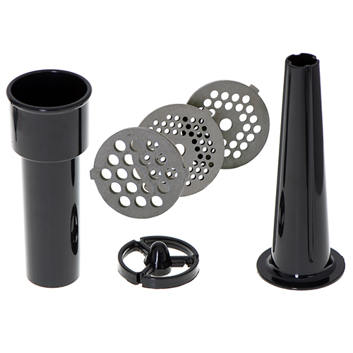 Великою перевагою нашої м'ясорубки перед аналогічними на ринку є численні насадки для роботи з різними харчовими продуктами. Завдяки їм ви зможете швидко приготувати і основну страву, і салат, і десерт на вечерю! У базовий комплект входять три ситечка різного розміру (для ковбасок, маку і фрикадельок). Вам не доведеться турбуватися про очищення окремих елементів. Просто протріть корпус вологою серветкою. Знімні елементи можна чистити м'якою щіткою, теплою водою і м'яким миючим засобом.