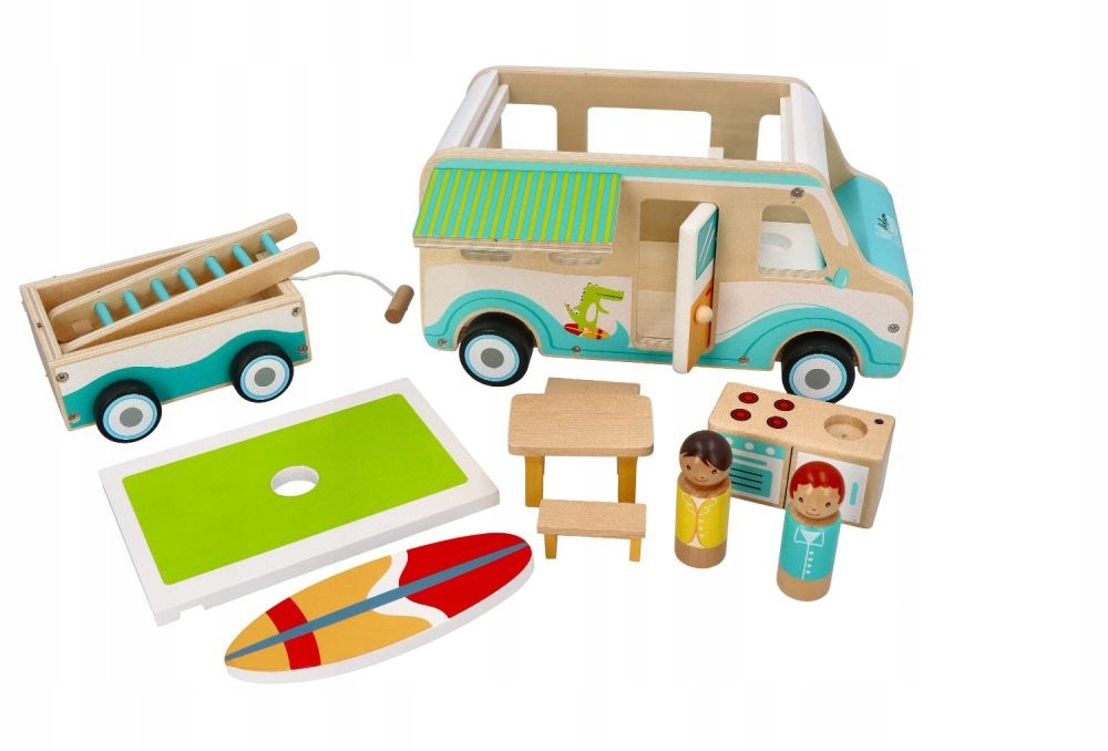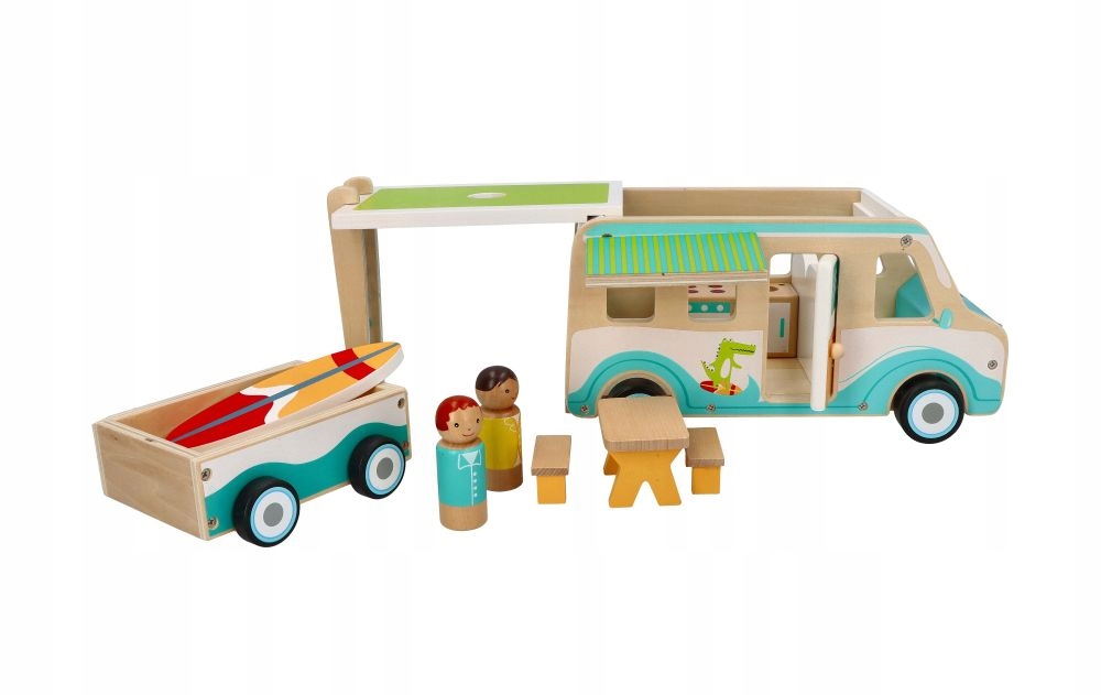 Ця чудова іграшка принесе багато радості малюкові, який мріє мати власний кемпер. Все це було з дерева. Це робить іграшку водночас екологічною та довговічною.