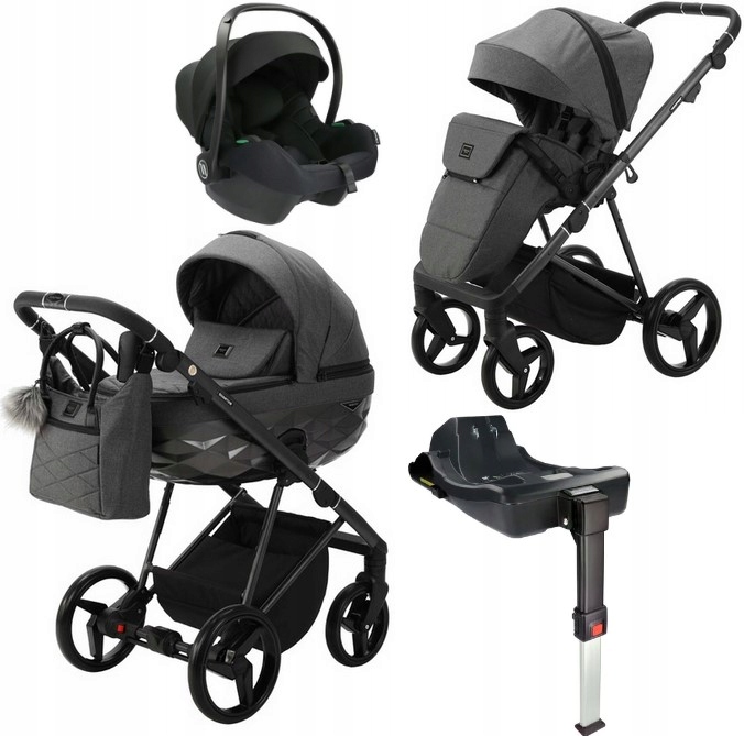 Adamex Quantum STAR COLLECTION - уособлює позачасовий класичний стиль колясок. Він поєднує в собі елегантну чорну гондолу в тривимірній формі з високоякісними тканинами. Ця модель відрізняється простою системою складання коляски в обидві сторони, м'якими амортизаторами, вентиляцією капюшона і днища гондоли, містким кошиком для покупок, необслуговуваними безкамерними колесами, вбудованим гальмом і тримачем для пляшки.