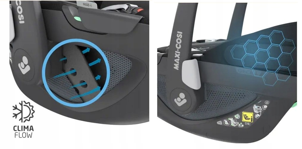 Спеціальні панелі ClimaFlow разом з дихаючою піною та тканинами забезпечують дитині комфортну циркуляцію повітря та запобігають перегріванню дитини в сидінні.