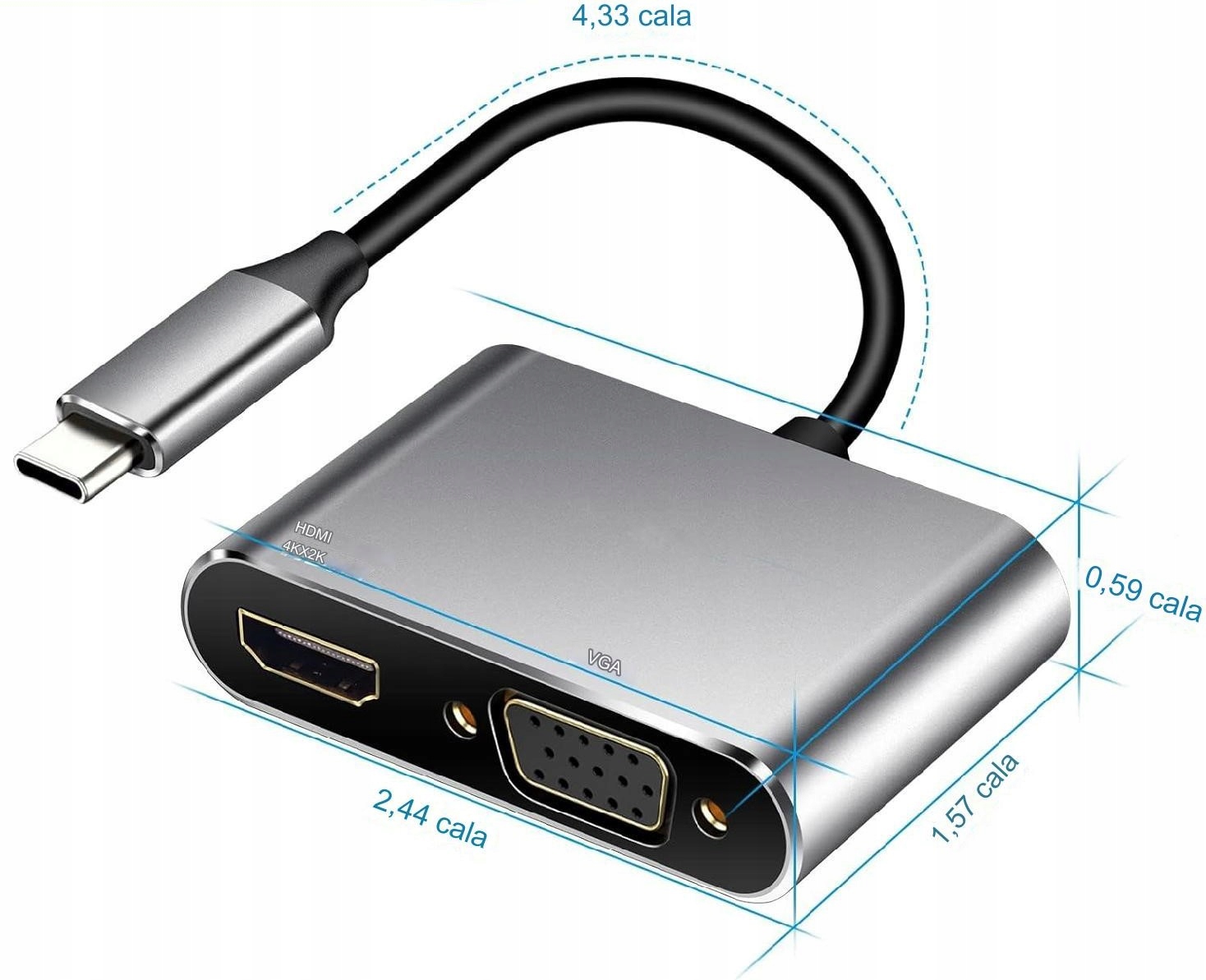 - роз'єми: USB-C (MALE), HDMI та VGA (жінки)