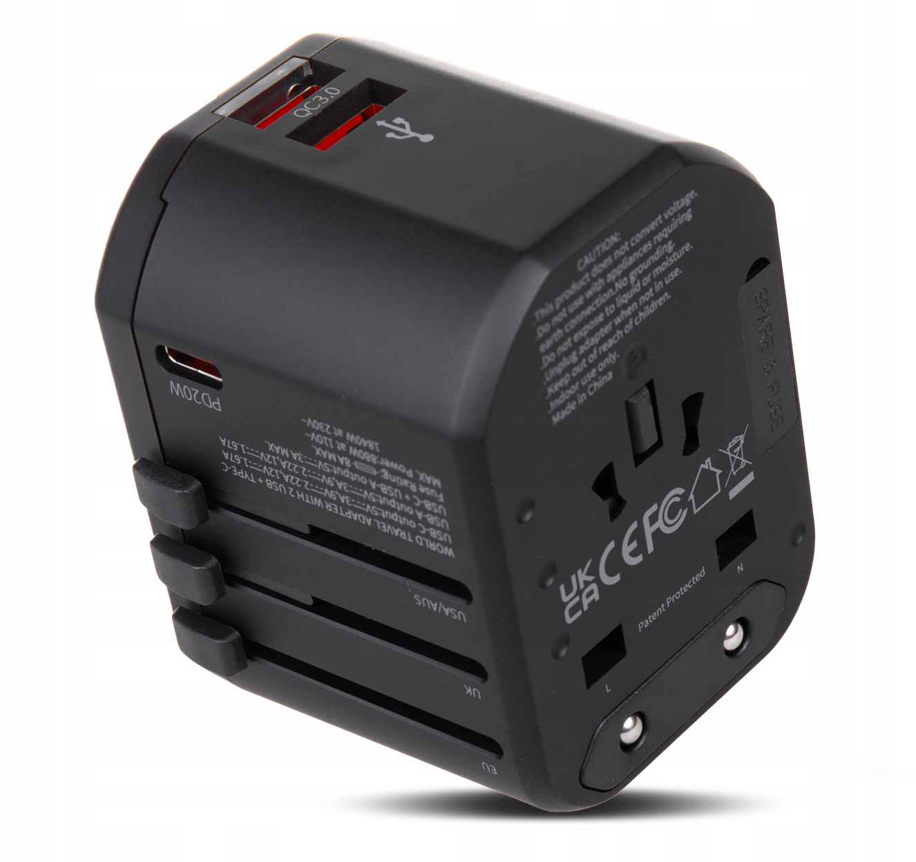 - International Зарядник для подорожей, що підходить для 200 країн з AUS/EU/US/UK USB та 1 x USB Type-C Ви можете заряджати до трьох пристроїв одночасно