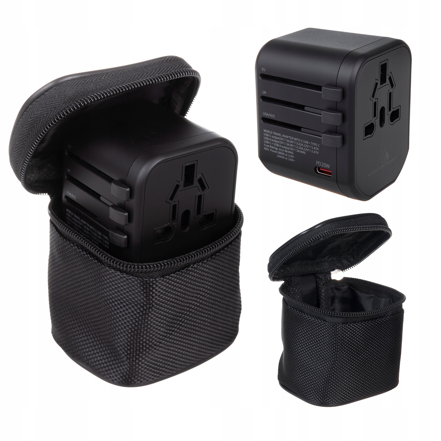 Адаптер для подорожей Maclean, USB-джерело живлення, 2xUSB 3A + USB-C PD 20W, Fuse 8A, Швидкий та швидкий заряд, 200 країн світу, MCE238N