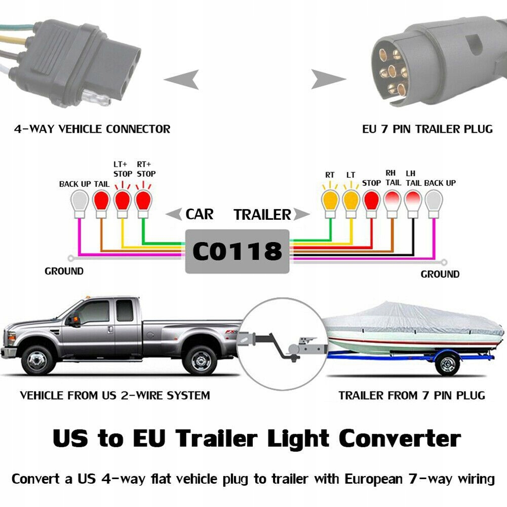 УНІВЕРСАЛЬНИЙ АДАПТЕР З 4 PIN НА7 PIN ДЛЯ ВСТАНОВЛЕННЯ ЄВРОПЕЙСЬКОГО ПРИЧЕПА (7PIN) НА АМЕРИКАНСЬКИЙ АВТОМОБІЛЬ (4PIN)