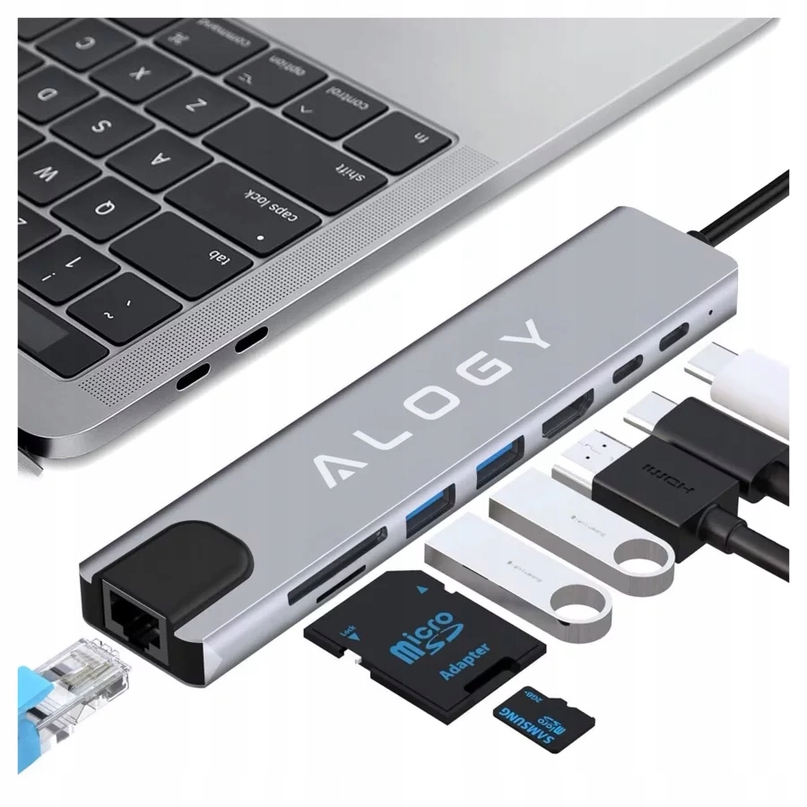 ▶ ️ HUB 8W1 USB-A, USB-C, LAN, SD, MicroSD Alogy Multihub Aluminium