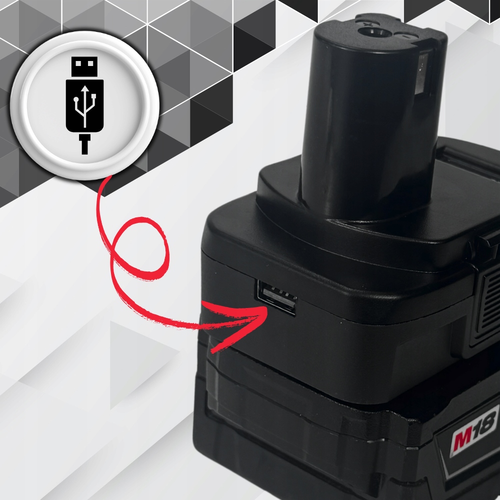 адаптер адаптера від інструментів Ryobi для акумулятора Milwaukee з USB -портом - збільшуйте можливості інструменту